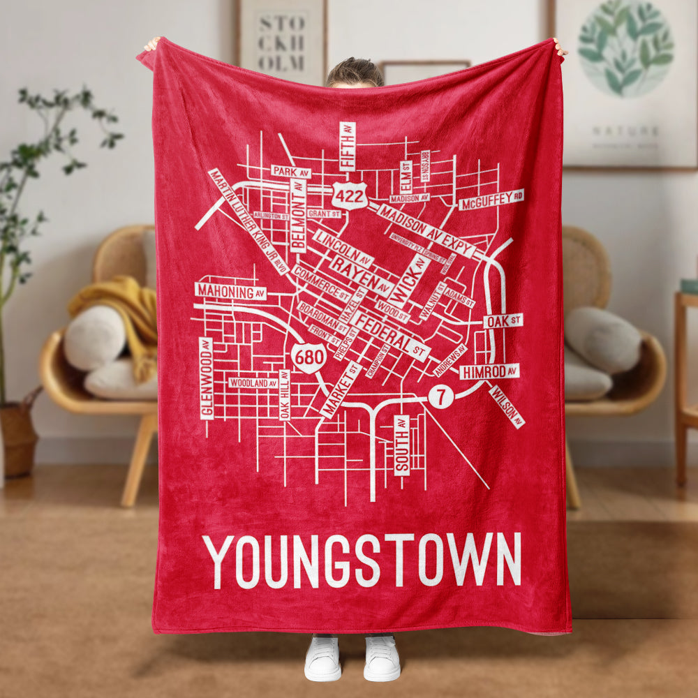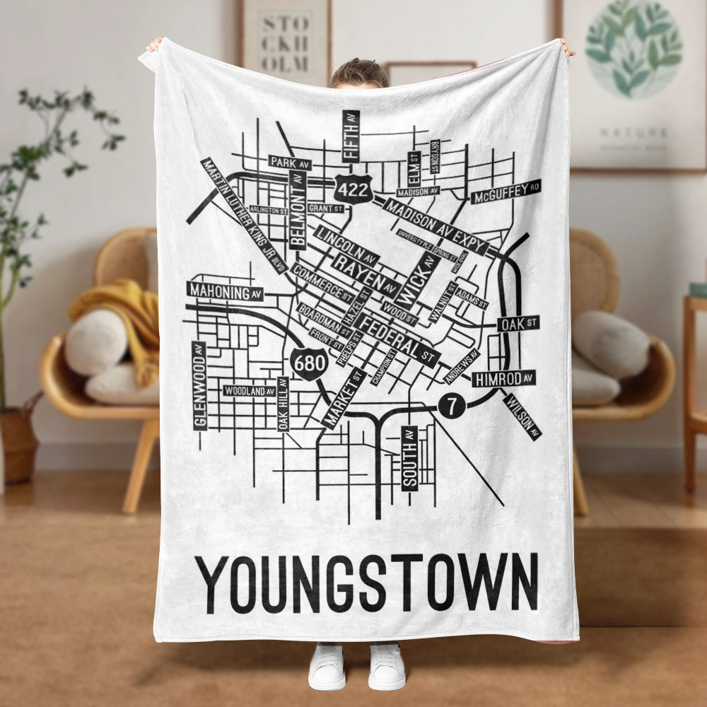 Youngstown, Ohio Street Map Blanket Freshmen/Graduates Memorial Gifts