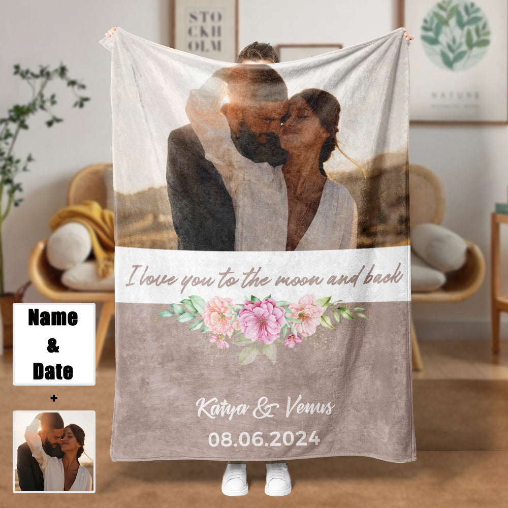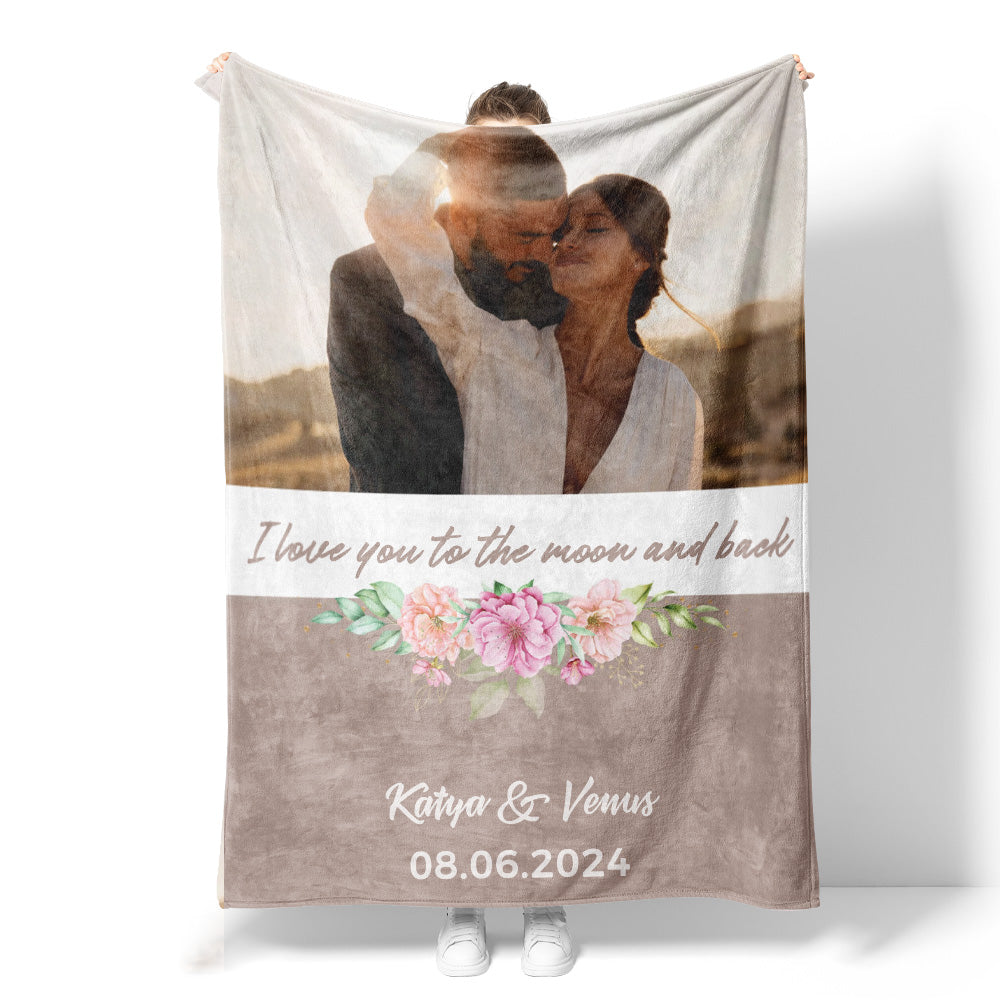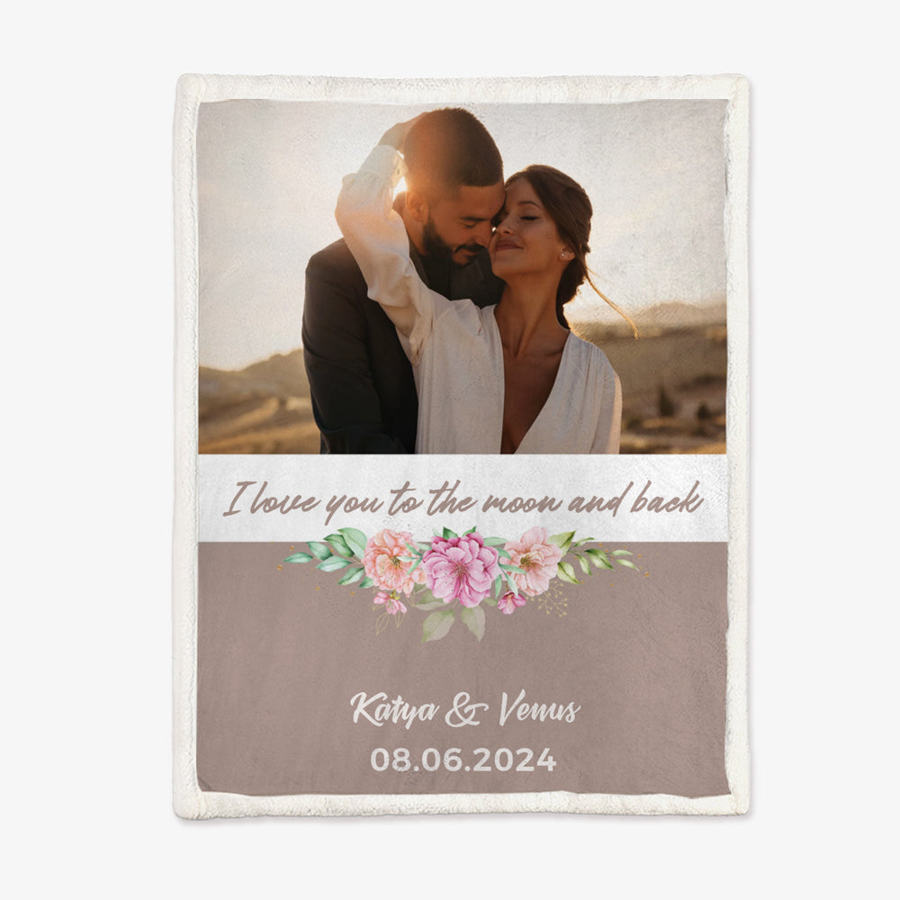 1 Picture Blanket I Love You to the Moon and Back Couple Blanket Sherpa Blanket