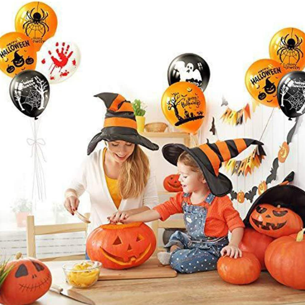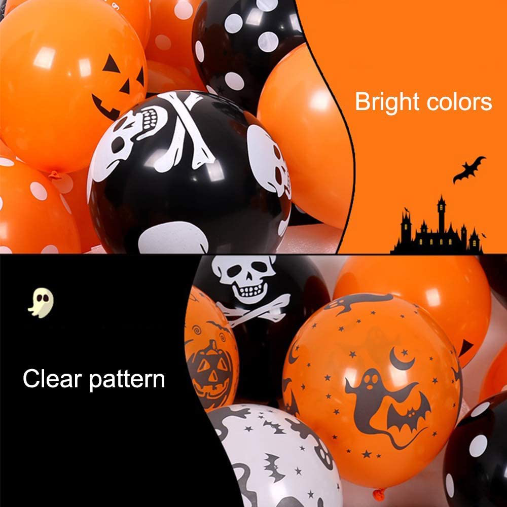 - Halloween Elements: These 100PCS Halloween Decoration Balloons patterns include skeleton, pumpkin, bat, specter, spider web. The popular elements of Halloween make balloons unique and eye-catching.