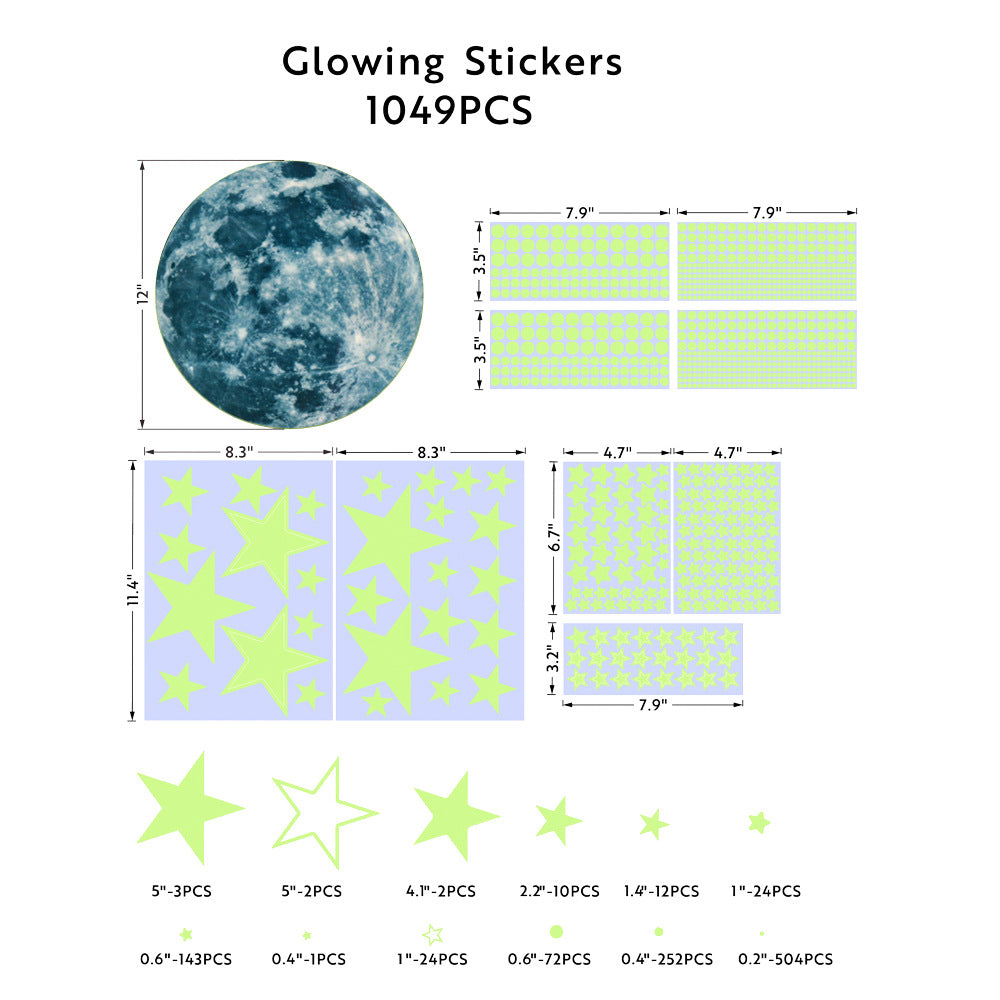 1049pcs Luminous Stickers Glowing Moon Stars Dots Fluorescent Stickers Wall Stickers Room Decoration