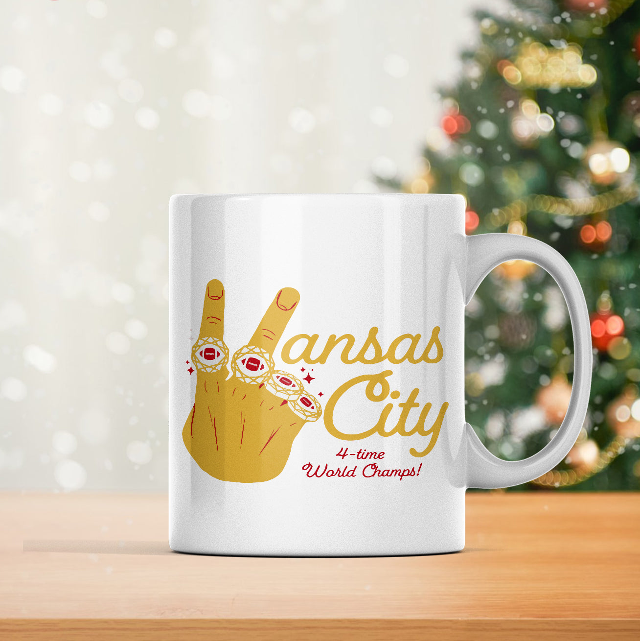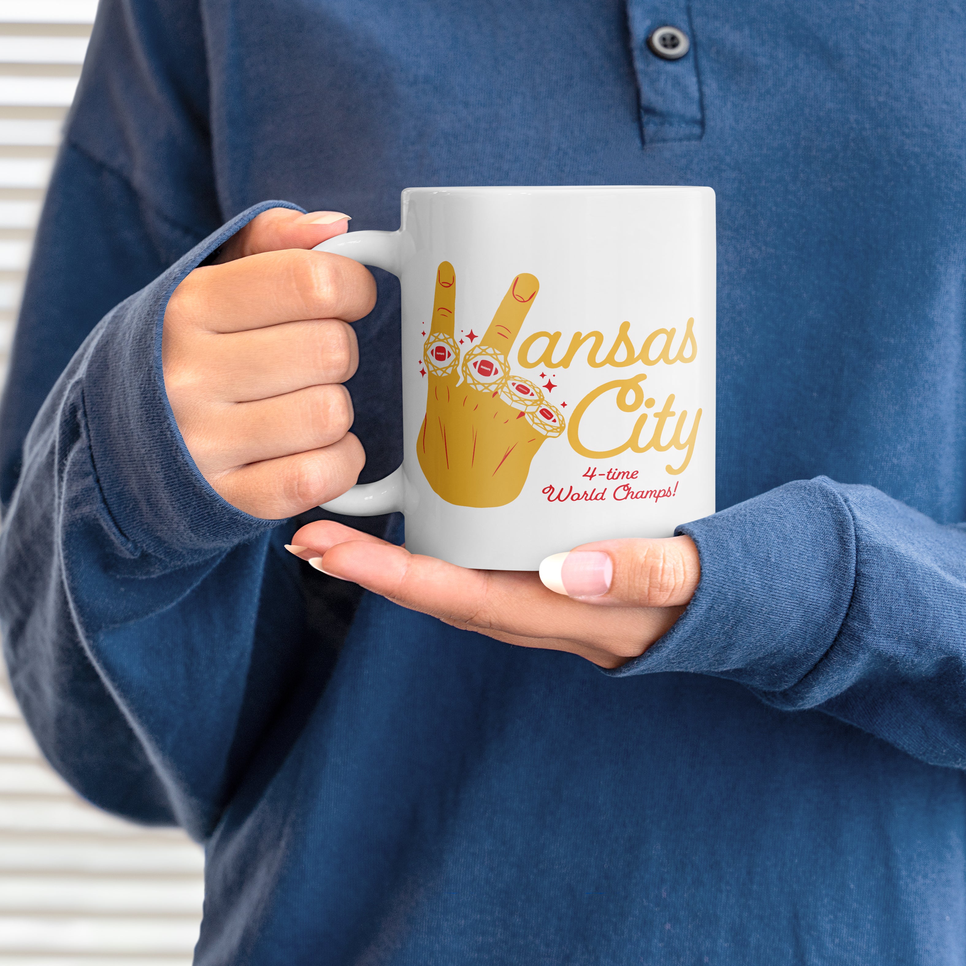11 oz Kansas City 4-Time World Champs Mug Coffee Cup College Football Fan Gift