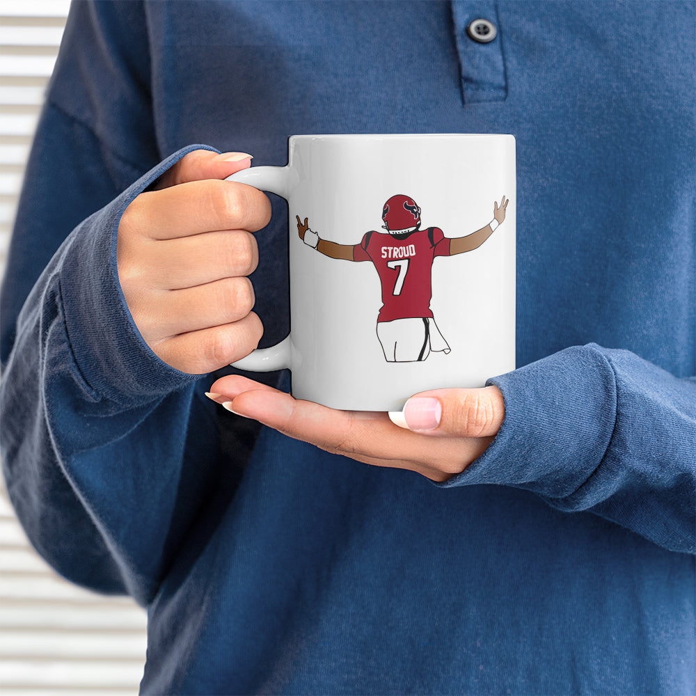 11oz Mug CJ Stroud Print Touchdown Victory Pose Houston Texans Fans Mug Birthday Gift