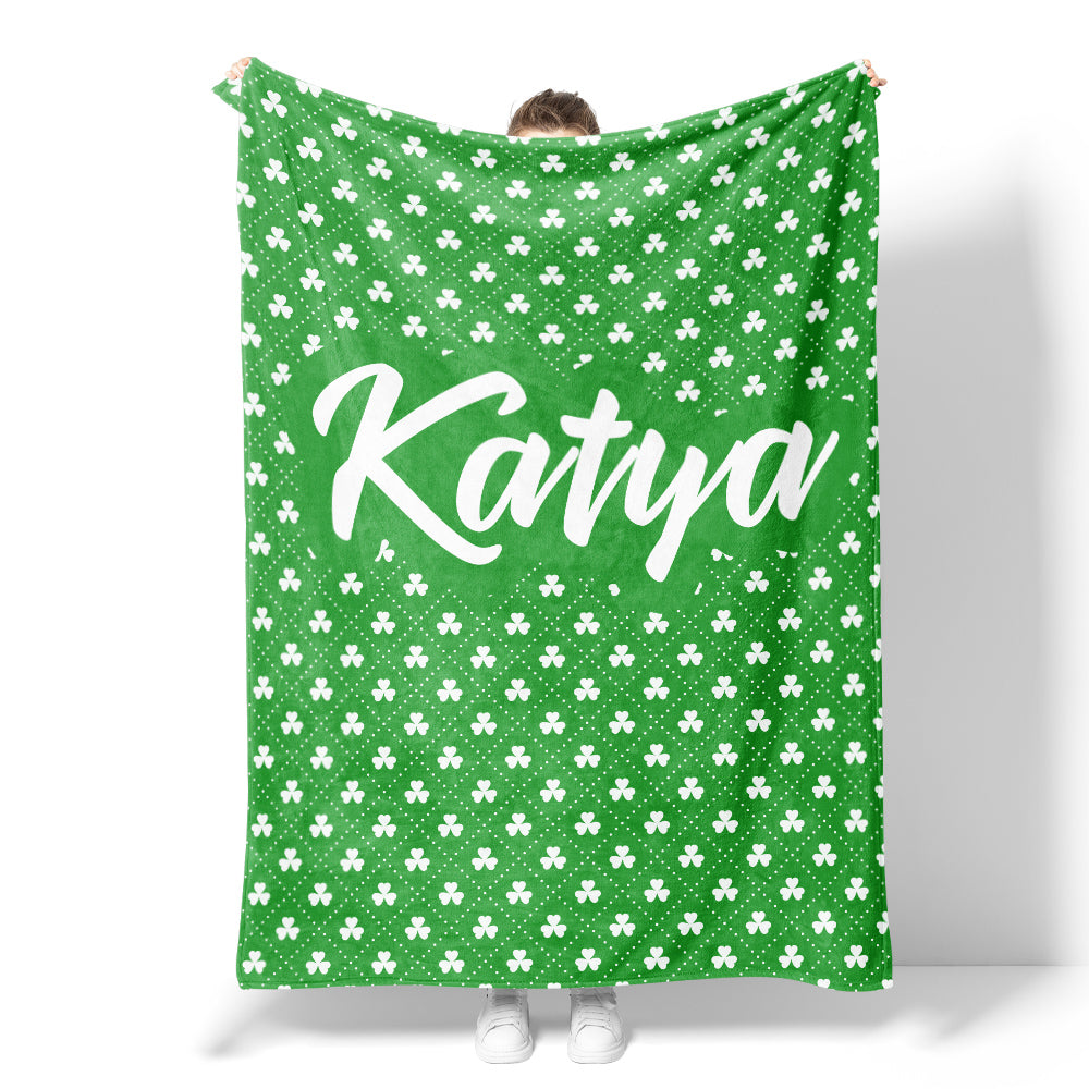 4FunGift® Custom Name Irish Clover St Patricks Day Throw Blanket Gifts