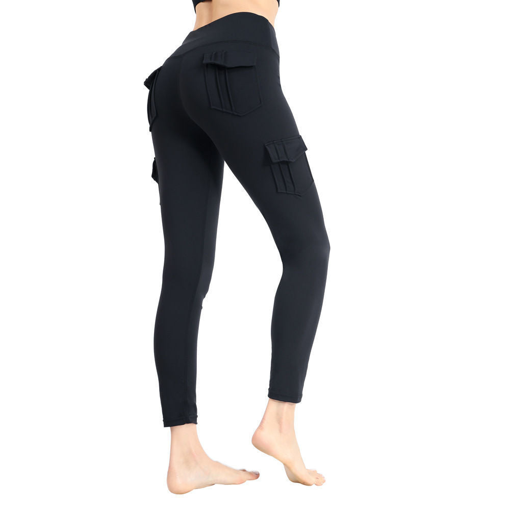 4FunGift® Women's Stretch Peach Hip Multi-pocket Fitness Hip-lifting Sports Yoga Pants