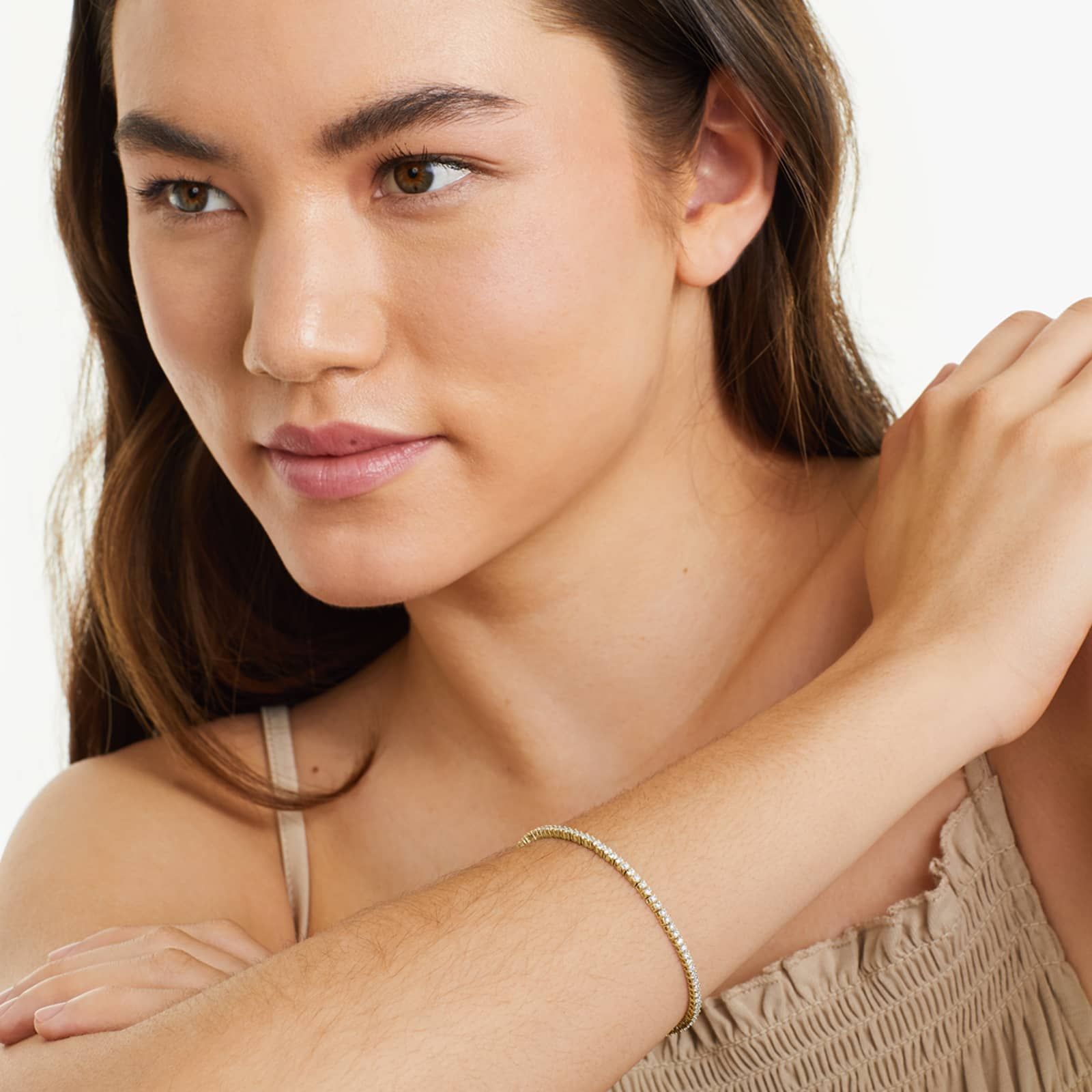 4FunGift® Yellow Gold Two Prong Diamond Tennis Bracelet