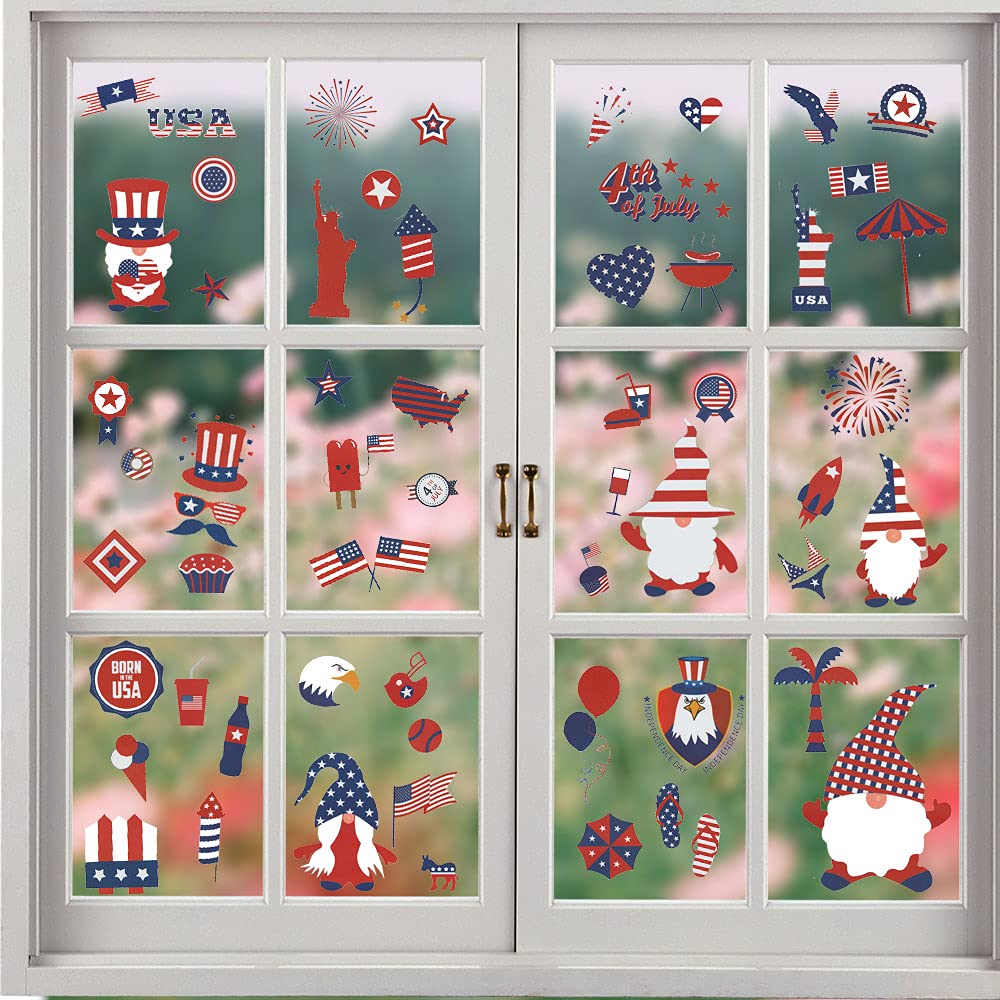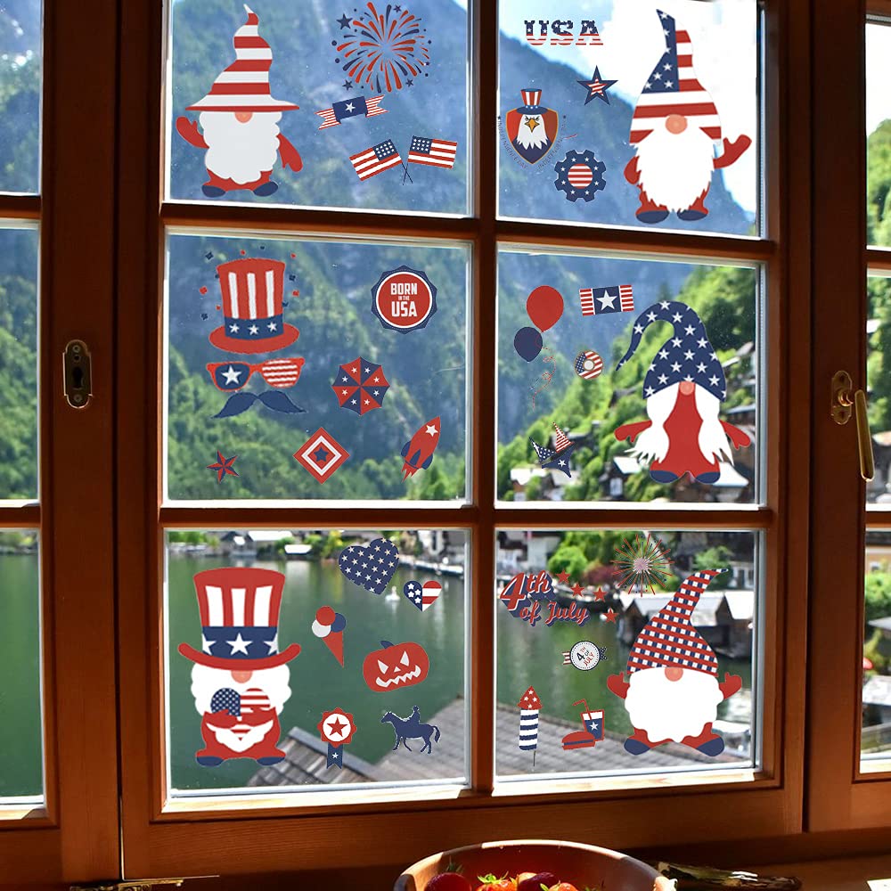 - 9 Sheets Fourth of July Gnome Window Clings: Each easter glass window cling sheet measures 11.9 inch×7.9 inch, These gnome window clings for Independence Day decorations