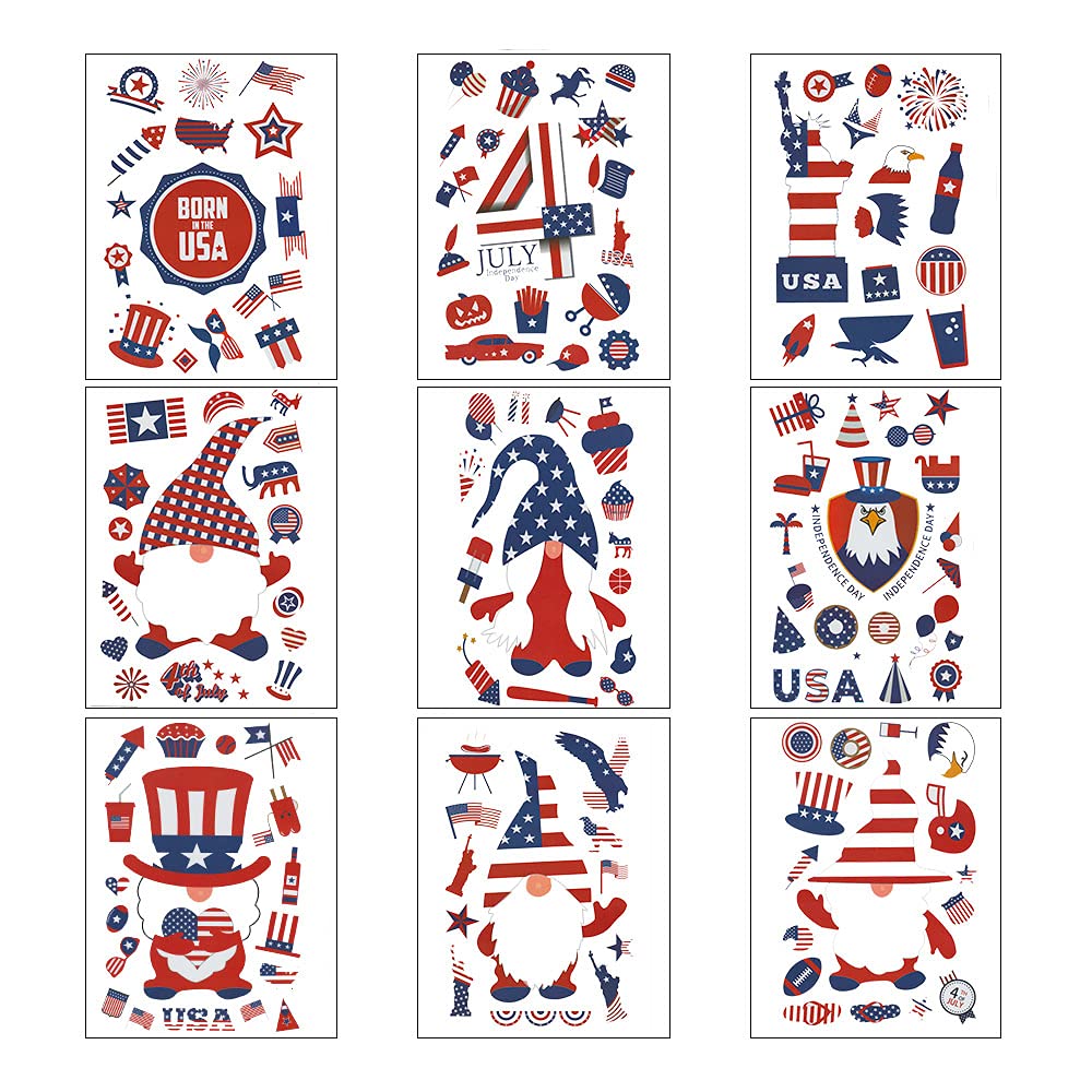 9 Sheets Wall Window Sticker Removable Independence Day Decoration Office Home