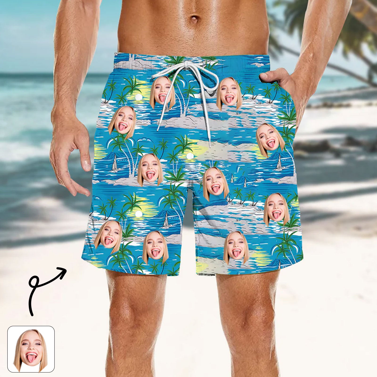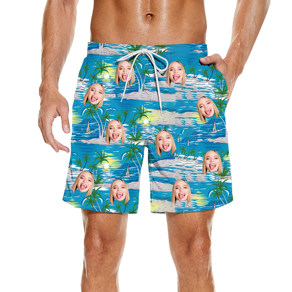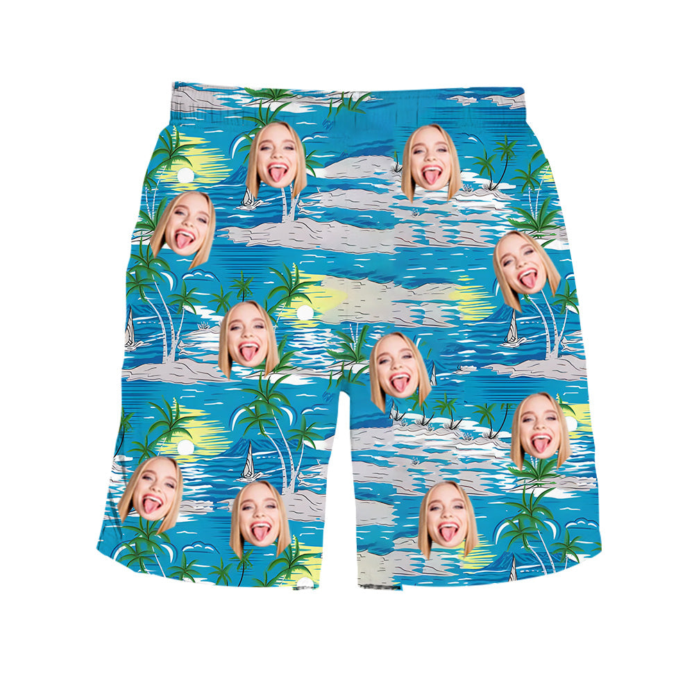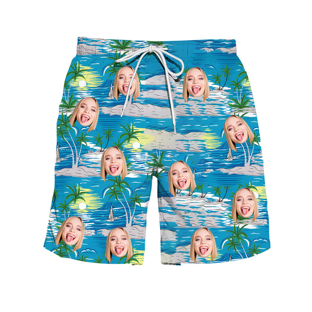 Blue Beach Shorts for Men Customized Face Photo on Shorts Summer Fashion Bottoms Valentine's Day Gift