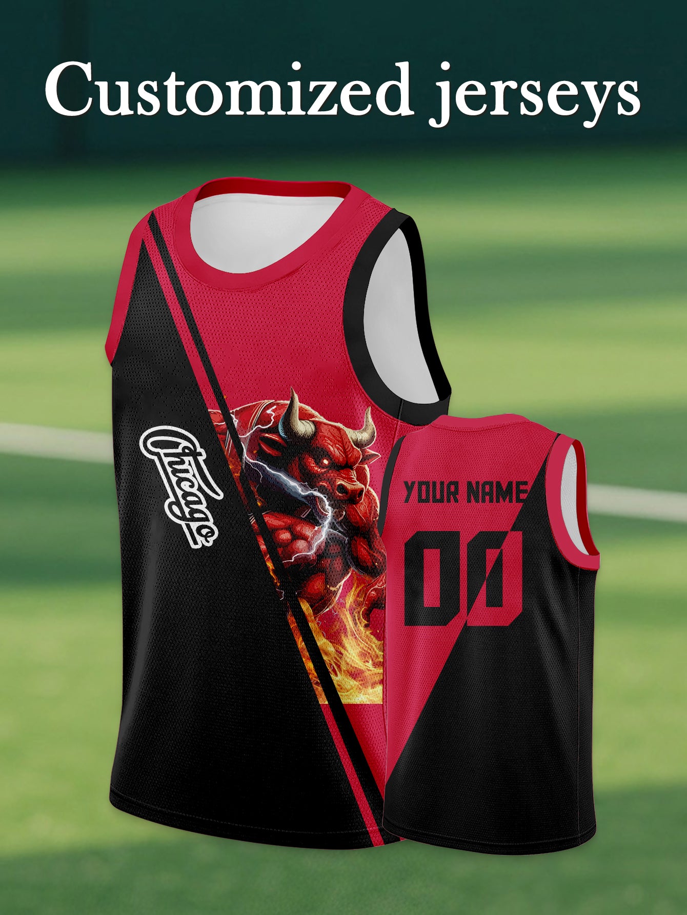 Chicago Bulls Flaming Horns Basketball Jersey - Personalized Name & Number