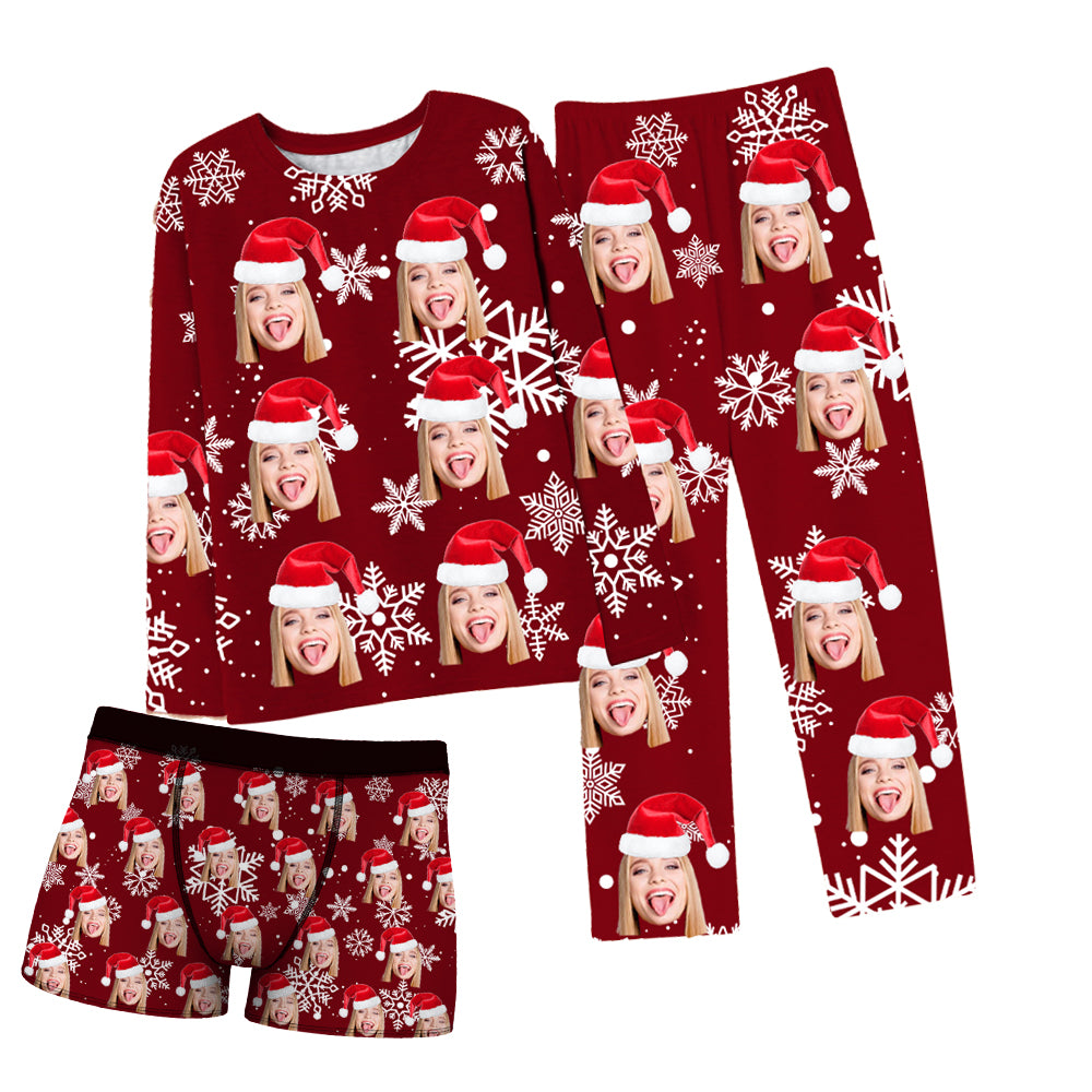 Christmas Snowflake Christmas Hat Print Long Sleeve Pajama Set & Men’s Underwear Home Wear