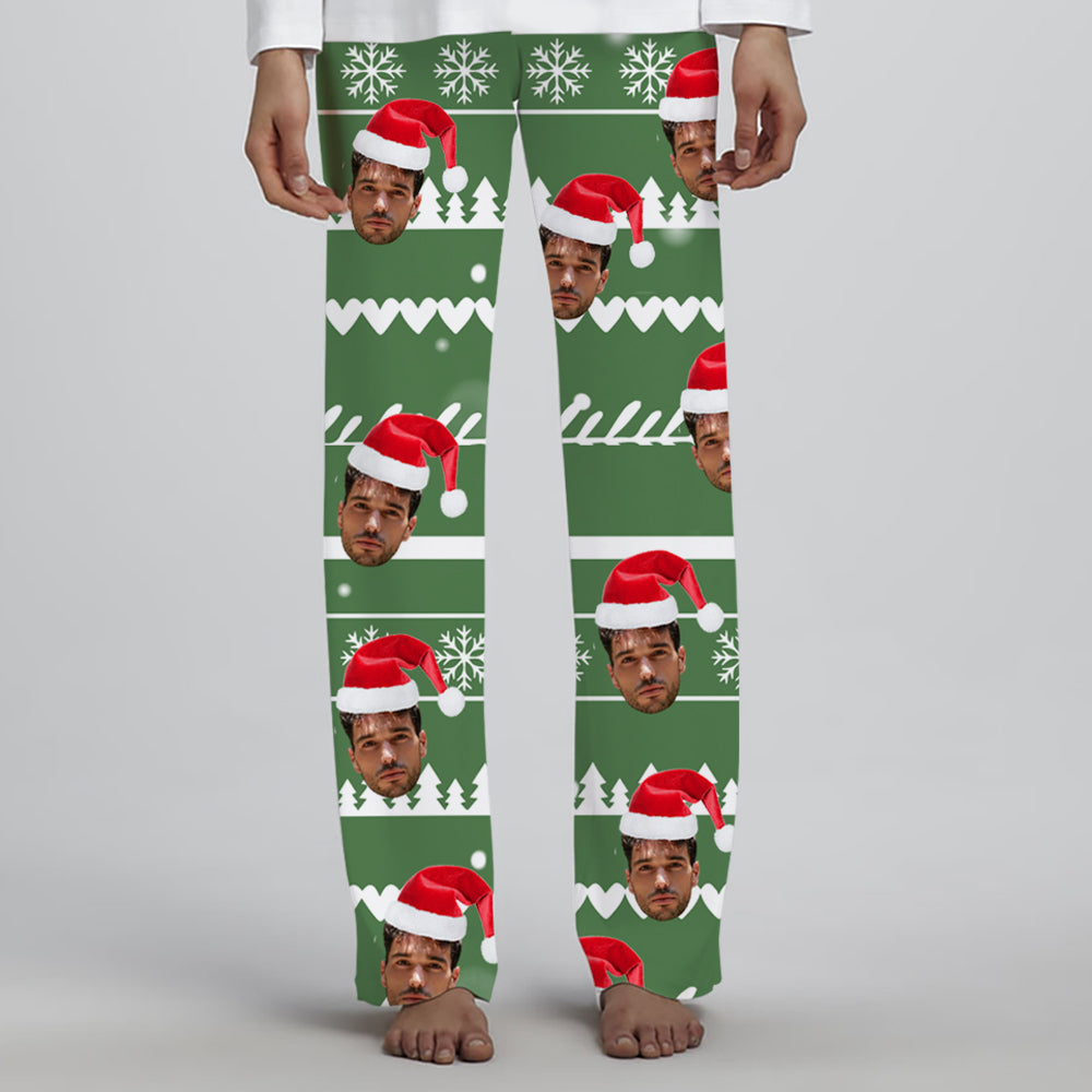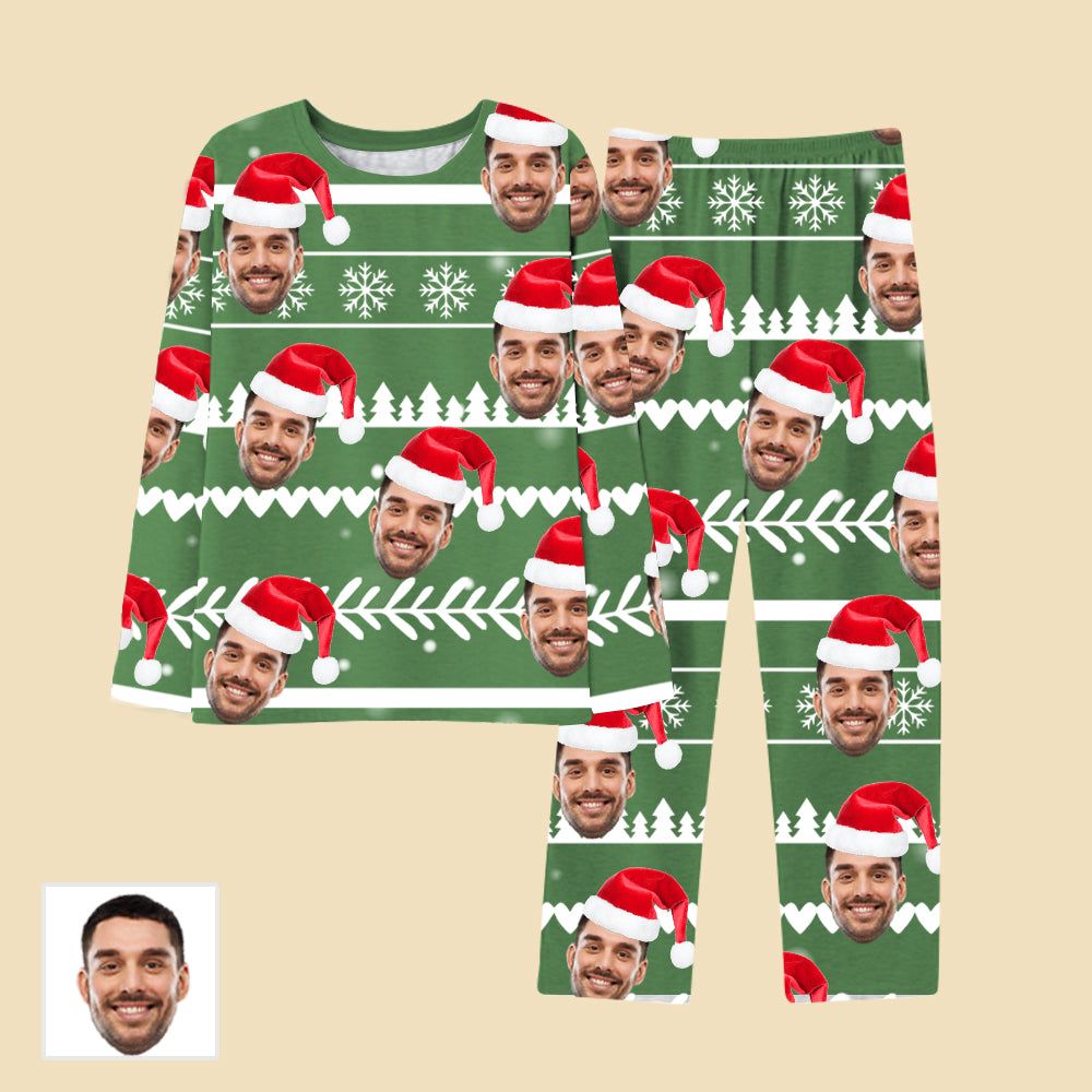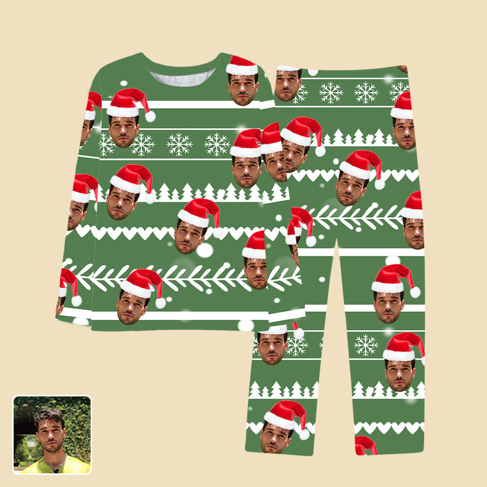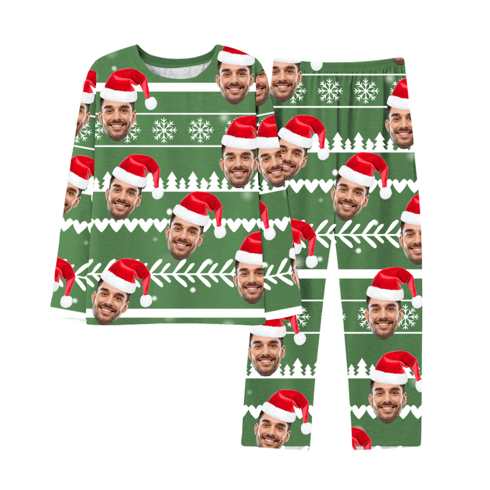 4FunGift® Christmas Snowflake Christmas Tree Print Santa Hat Custom Face Green Pajamas