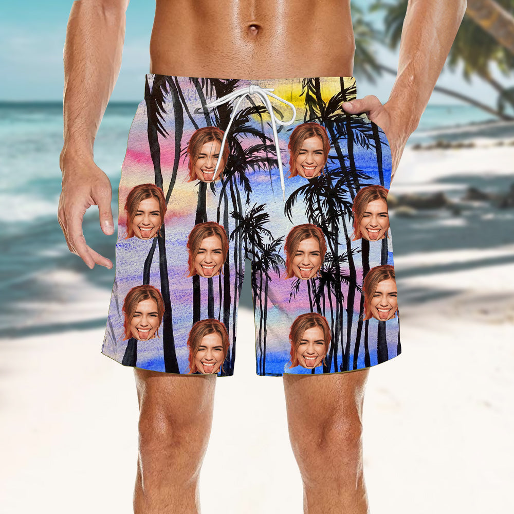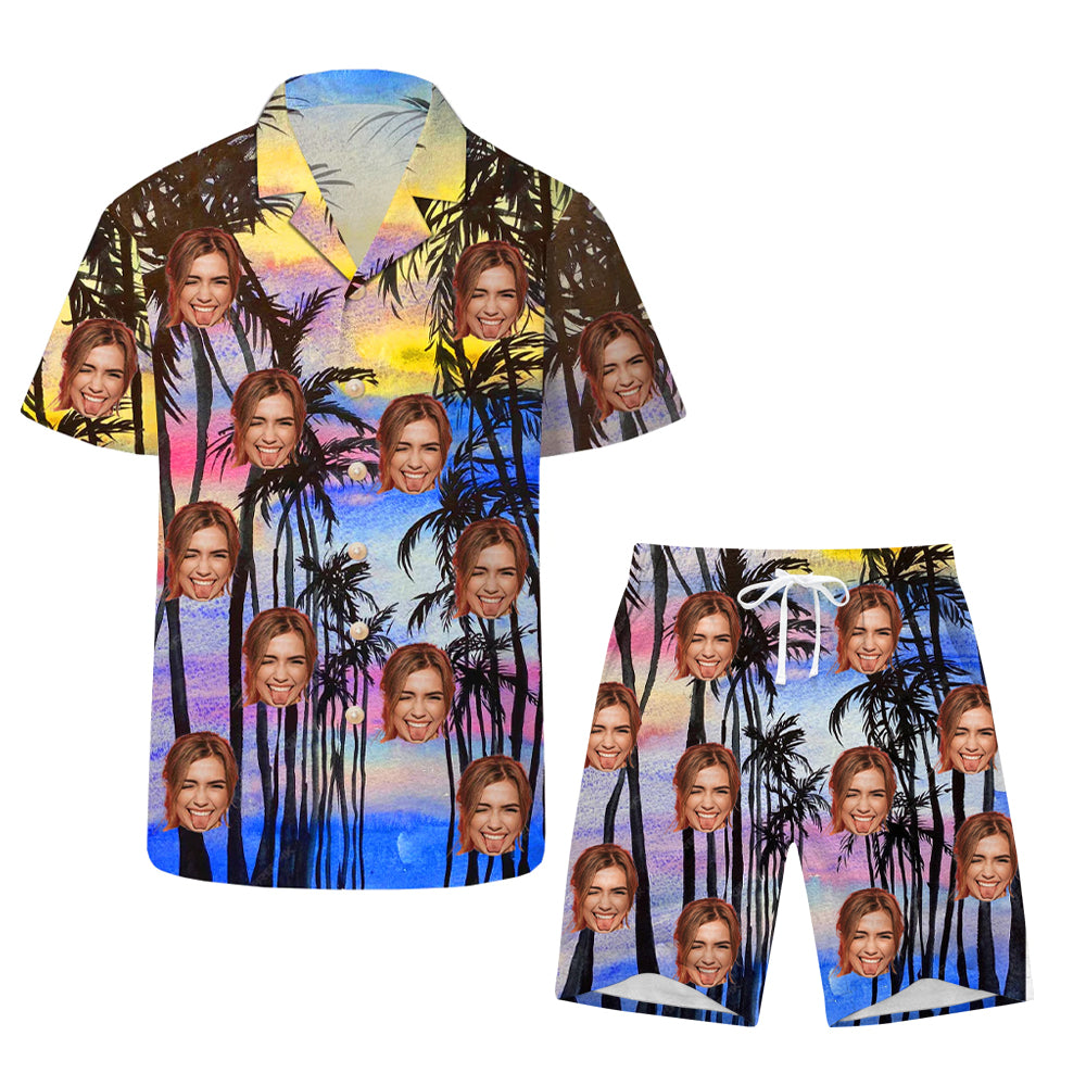 Colorful Sunset Print Customized Men's Shirts & Beach Shorts Summer Casual Wear