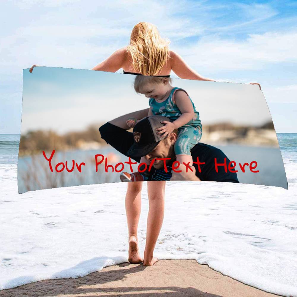 Custom Photo Name Beach Towel Customized Text Name Design Gift Pool Swim Travel