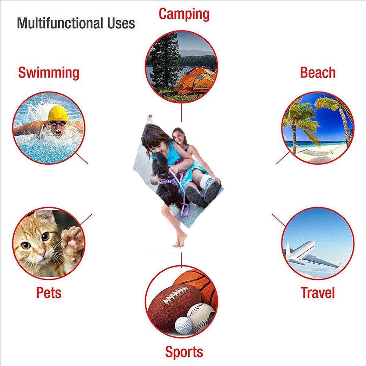 - [ SUPER ABSORBENT & QUICK DRYING] Personalized beach towels are made of microfiber fabric which is comfortable, breathable, skin-friendly and soft touch. The strong water absorption allows your travel towel to quickly absorb water from your body after swimming or bathing and quickly absorb sweat after exercise. Each towel is made to dry quickly and easily, saving you a soggy backpack and saving the tumble dryer.