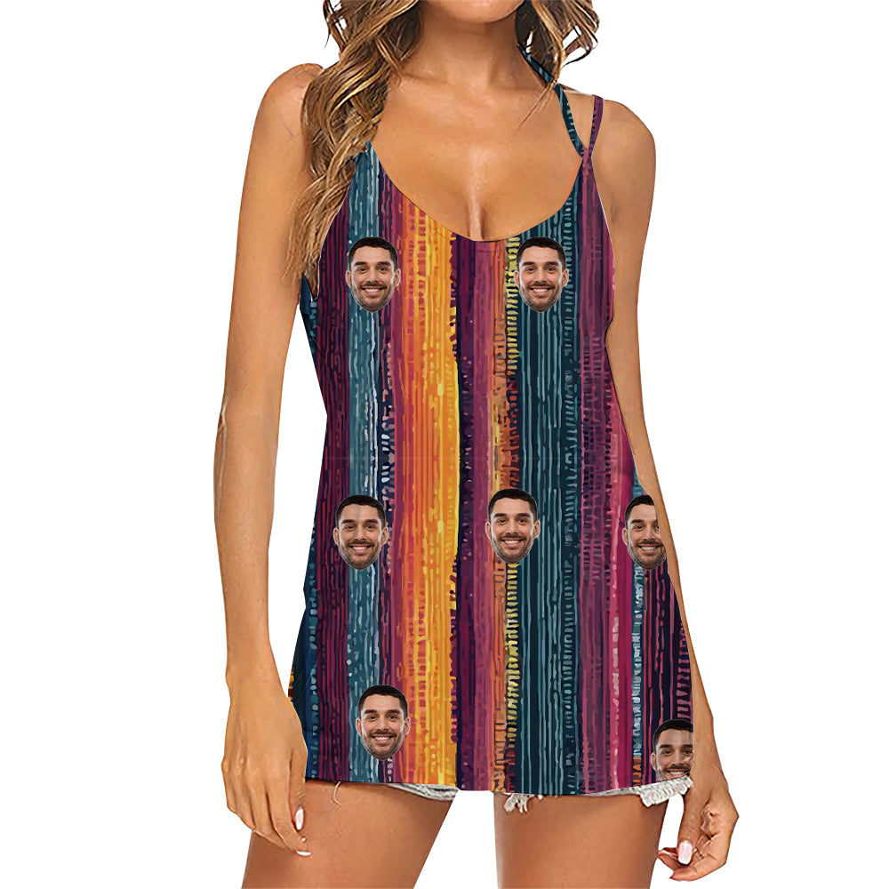 Colorful Vertical Stripe Print Women's Short Dress Summer Sleeveless Top Suspender Dress