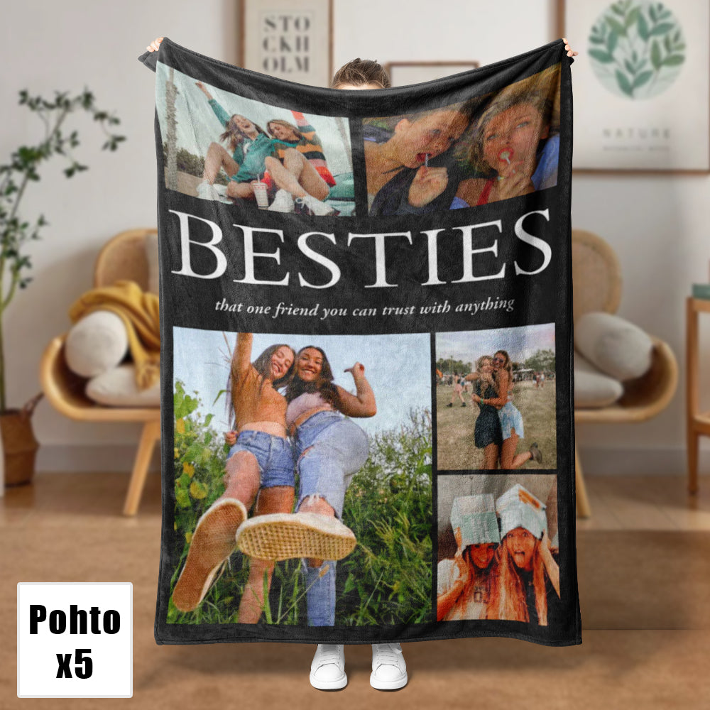 Custom 5 Photos Blanket Besties Gift Best Friends Fleece Blanket
