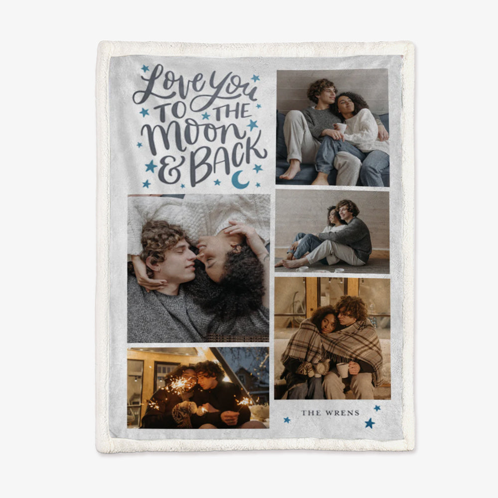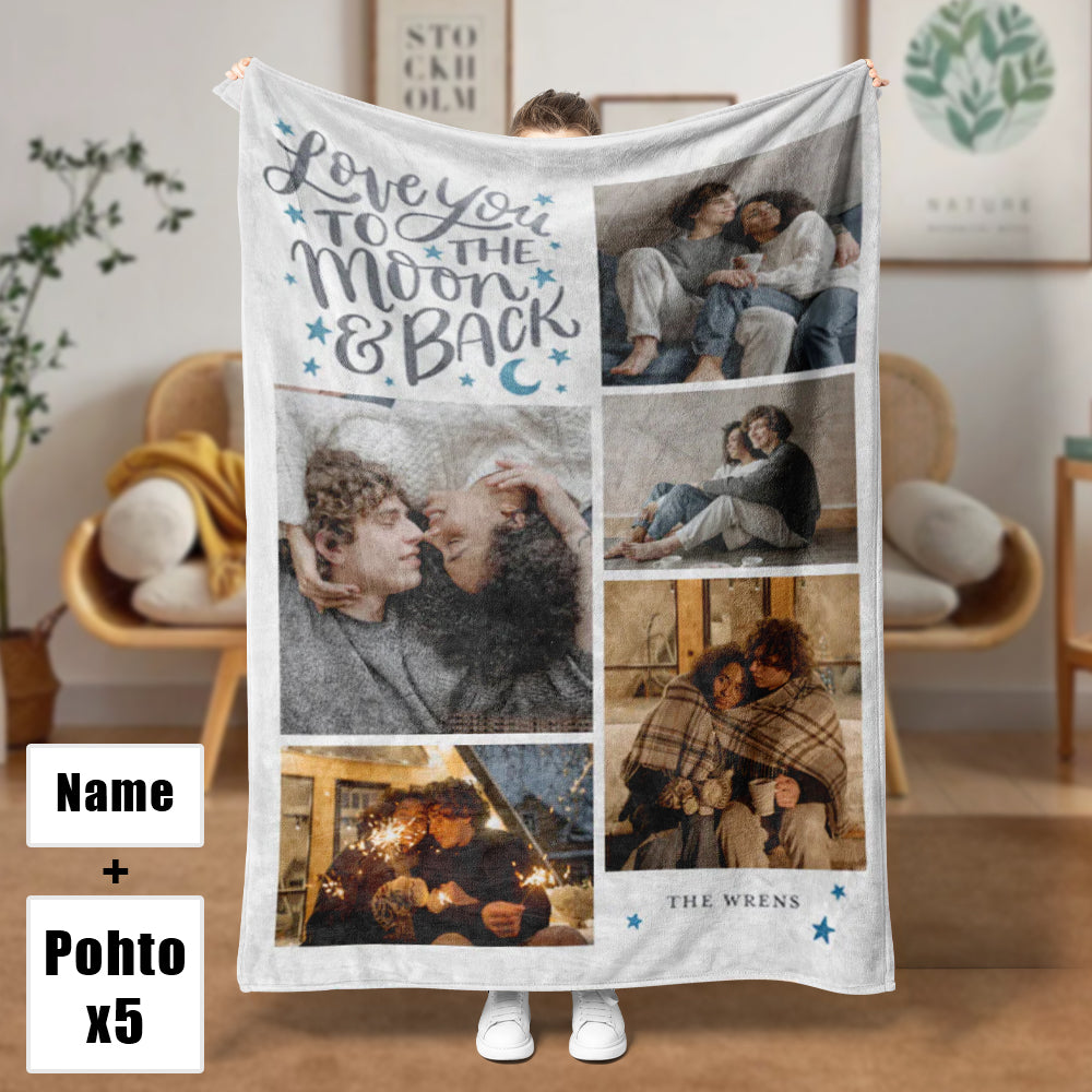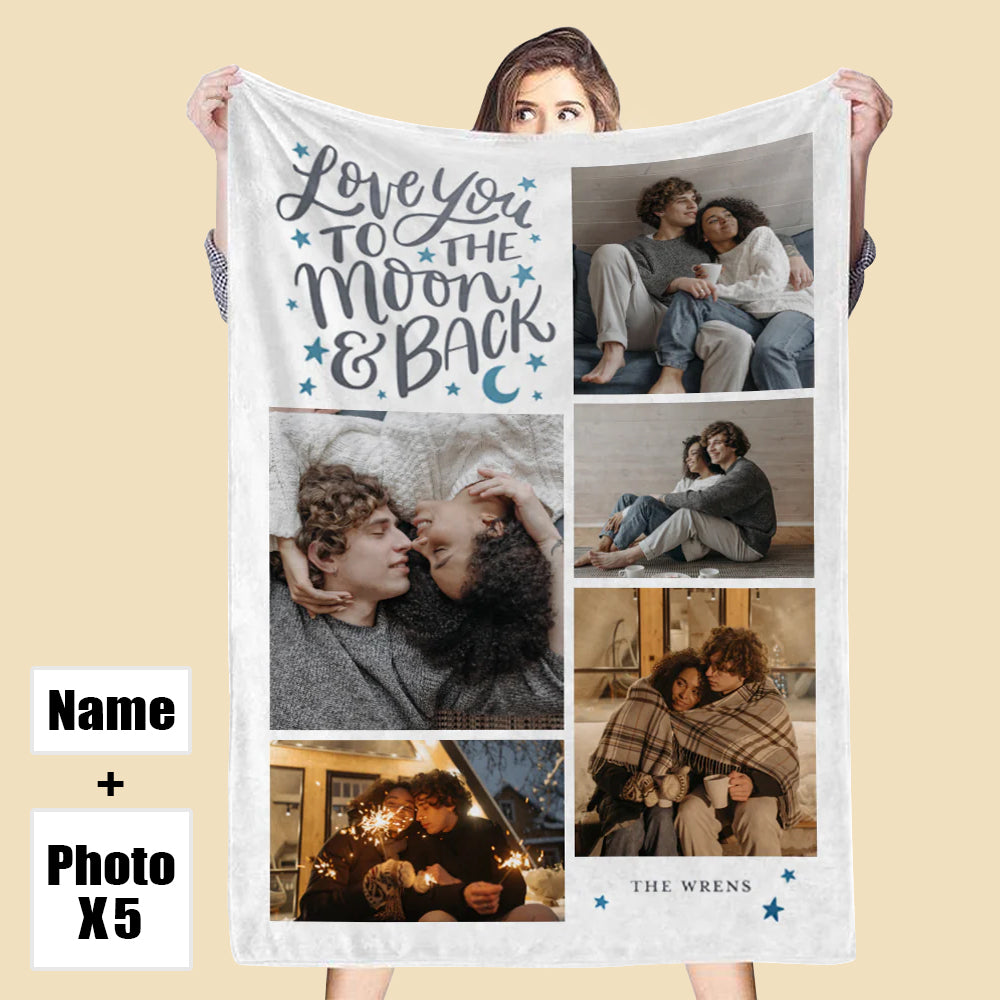 Custom 5 Photos&Text Fleece Blanket Love To The Moon