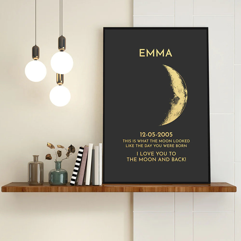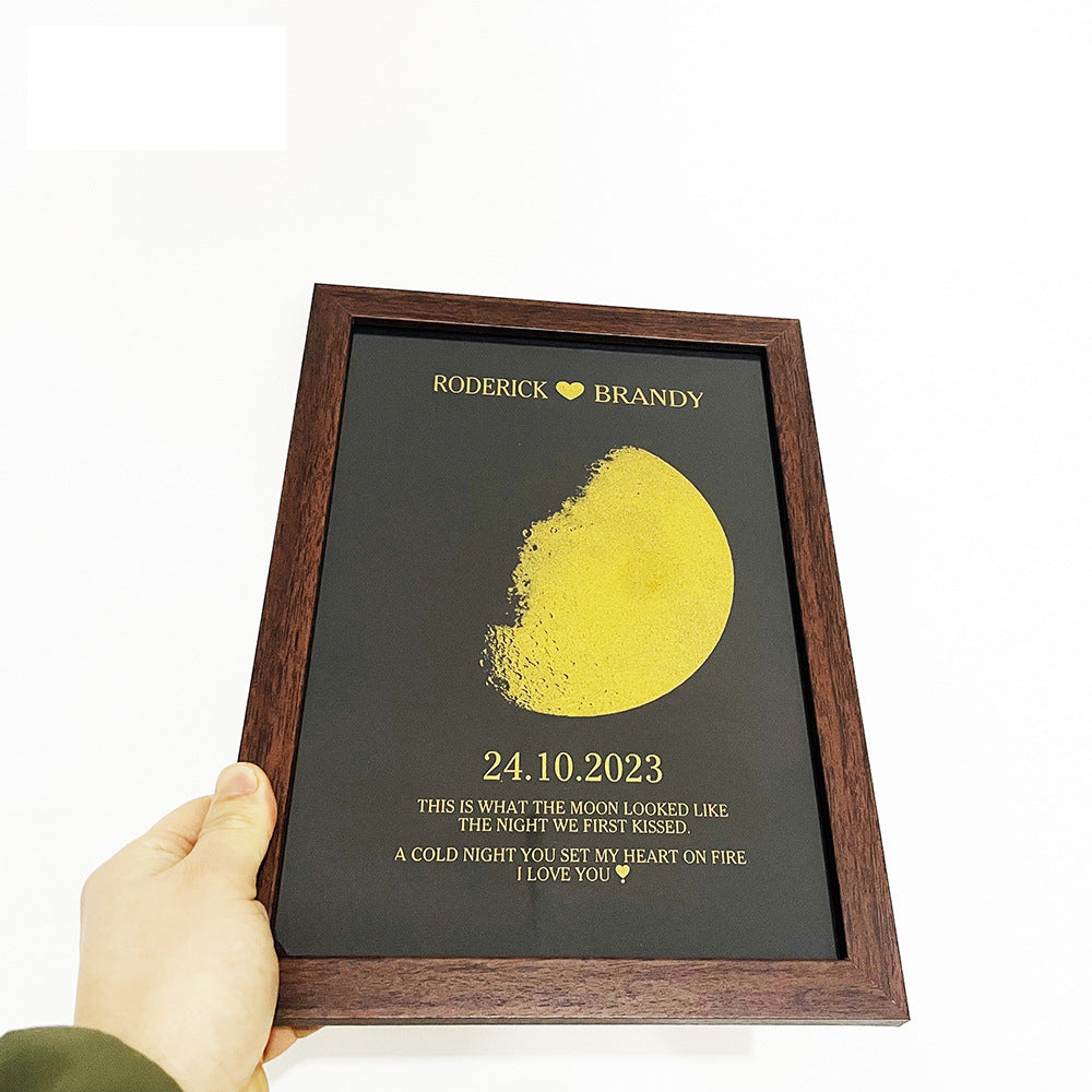 In every extraordinary moment, we use the eternal moon phases to commemorate those heartwarming instances. Celebrate your love with a thoughtful and personalized gift, crafting unique cherished memories for that special night. Our moon night print wooden frame displays the precise lunar phase from the night you first met or the day you were born, making it a truly exceptional and emotionally rich present.