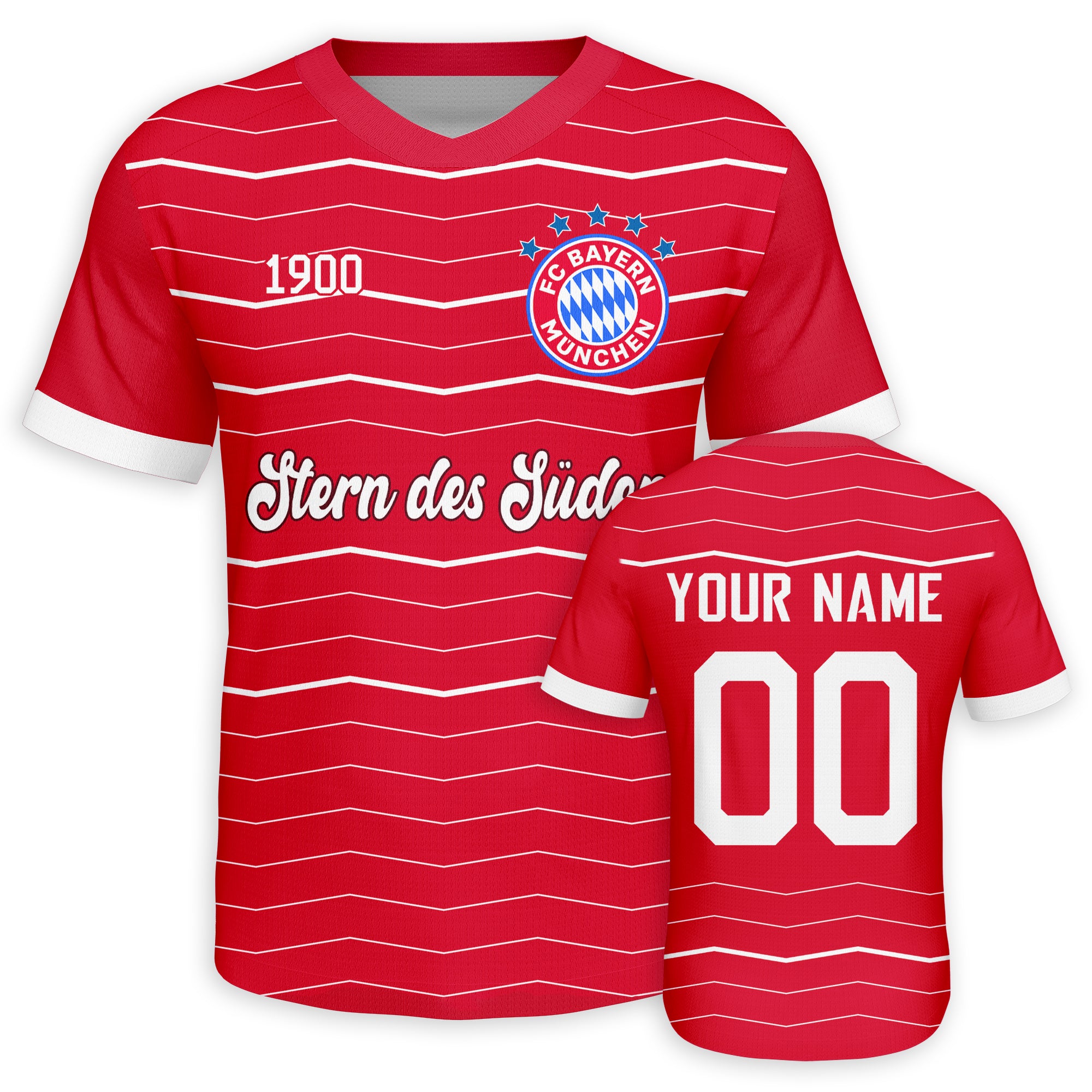 Custom Bayern 1900 Striped Kit - Red/White Heritage Name & Number Printing