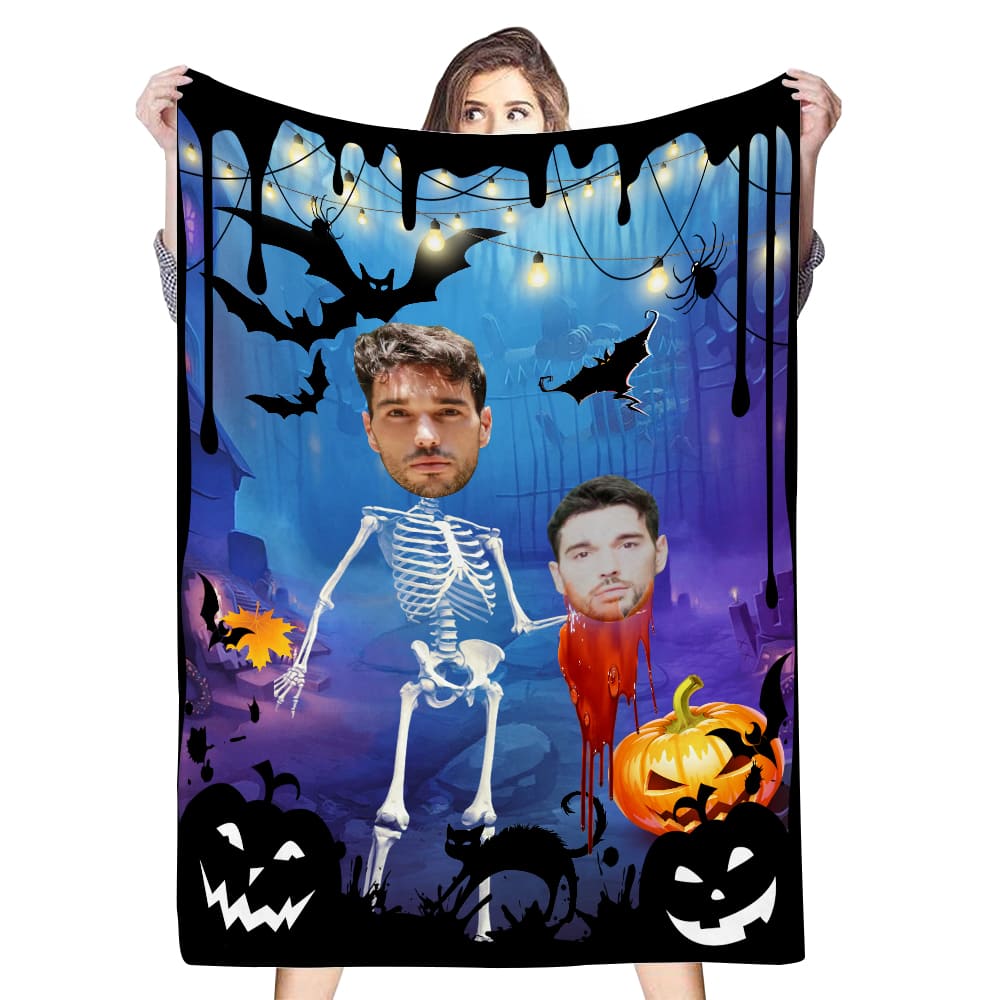 Custom Face Blankets Personalized Halloween Bat Blanket