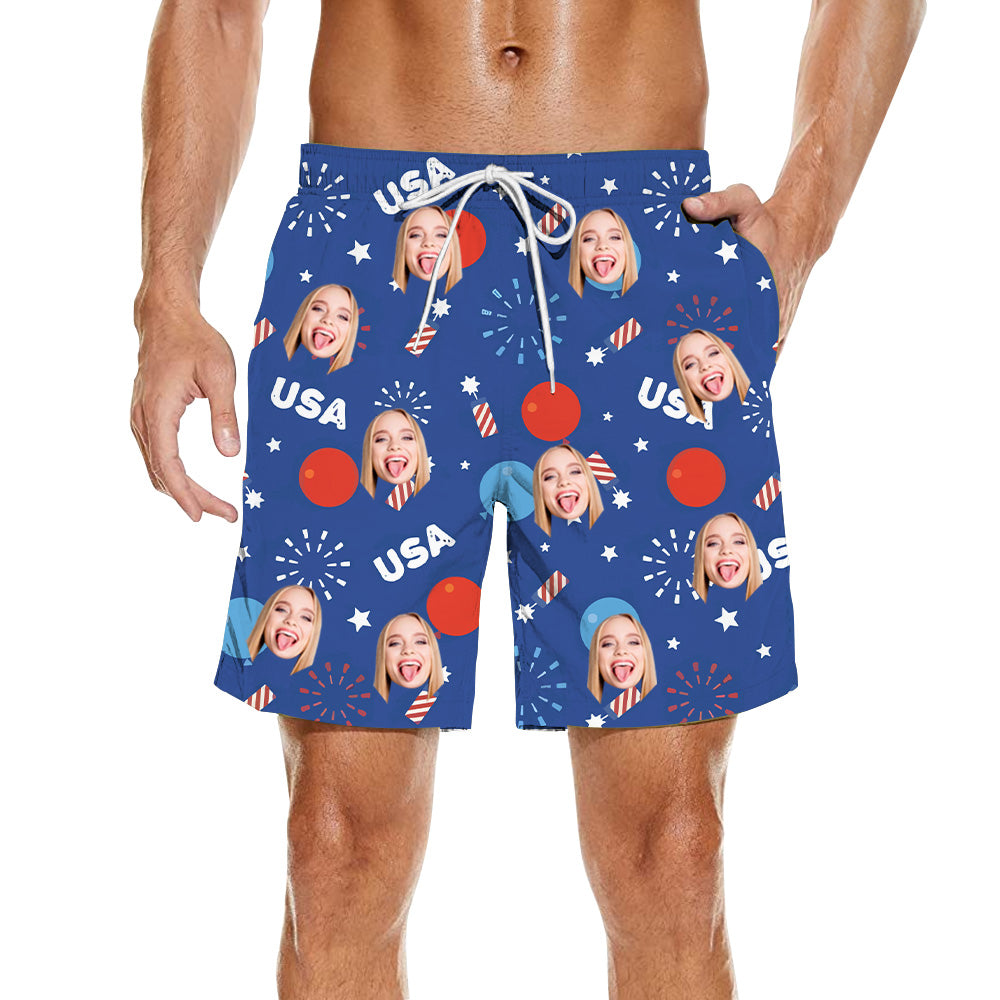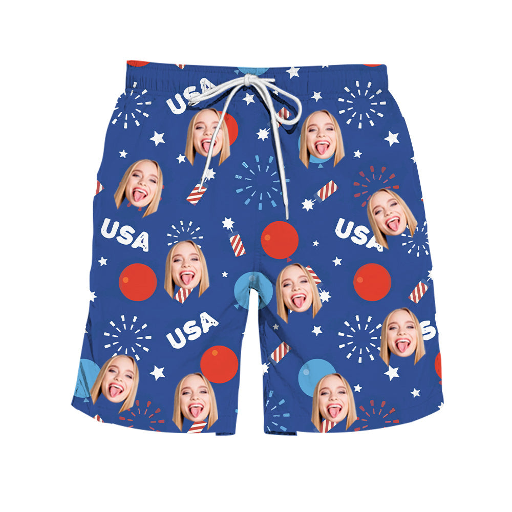 Custom Face Firework Board Shorts July 4th Oceanfront Vibes