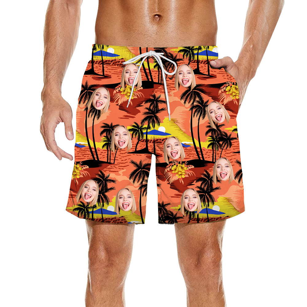 Custom Face Hawaiian Swim Trunks Swimwear Custom Men Beach Shorts With Face Logo Bachelor Beach Party