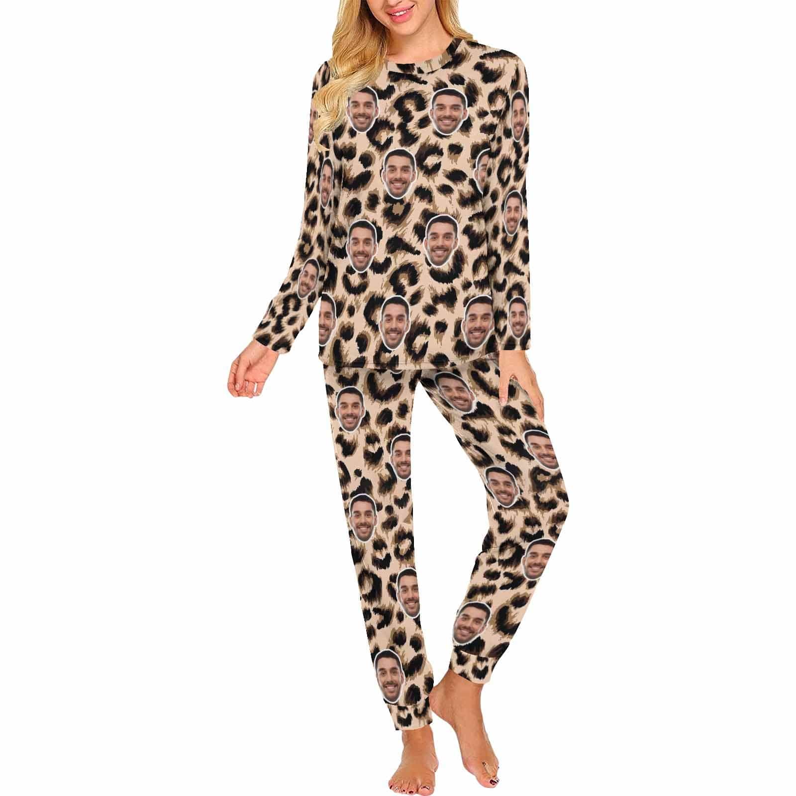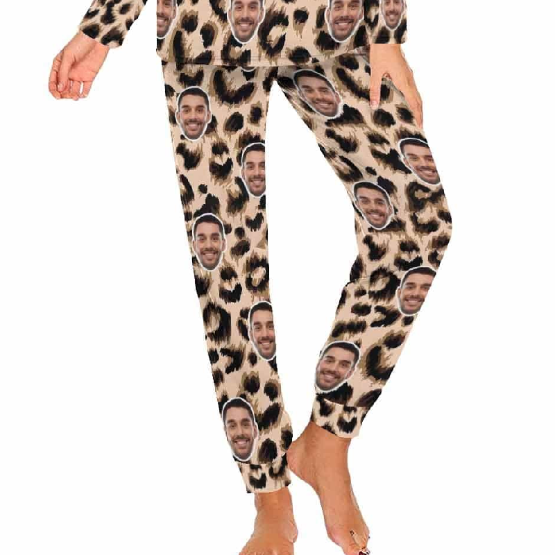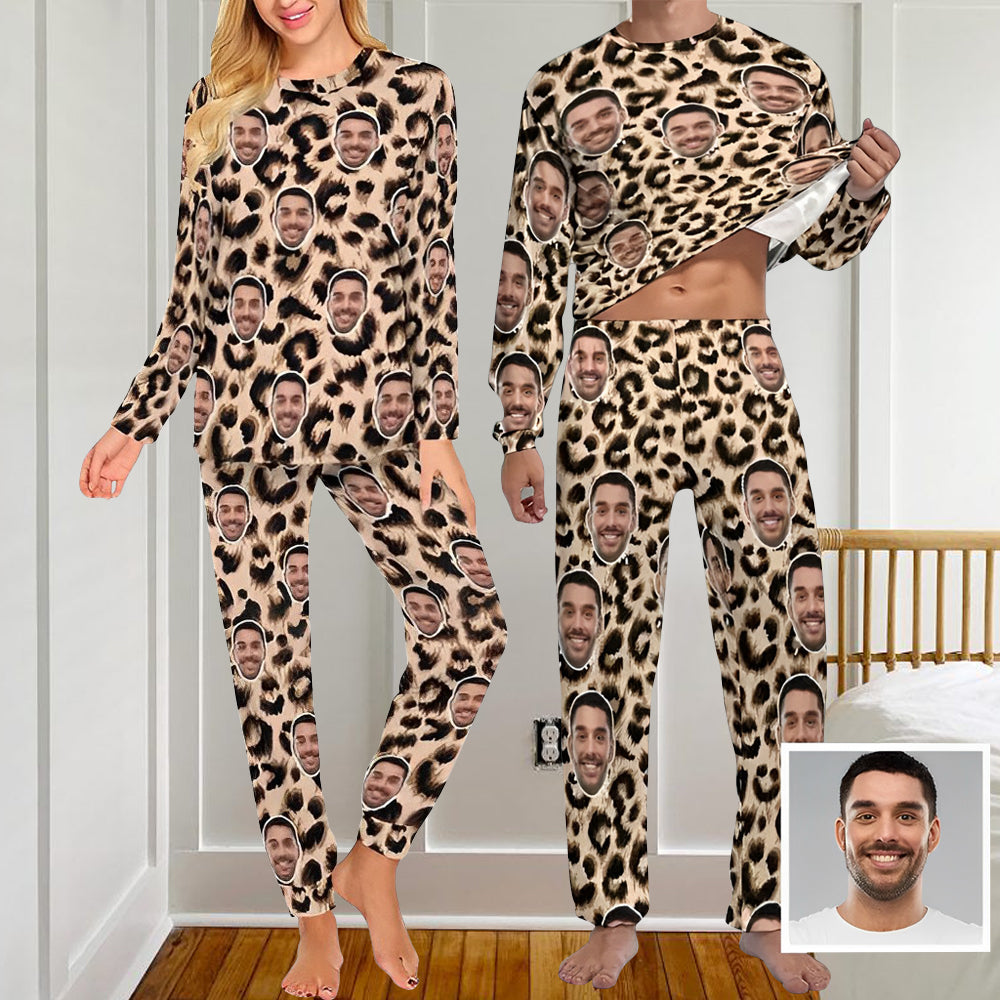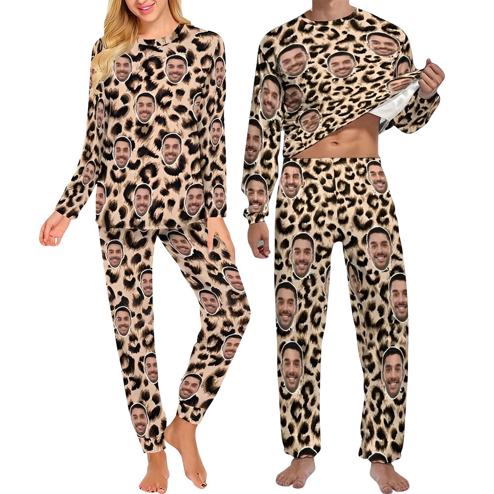 Custom Face Leopard Couple Pajamas Personalized Sleepwear