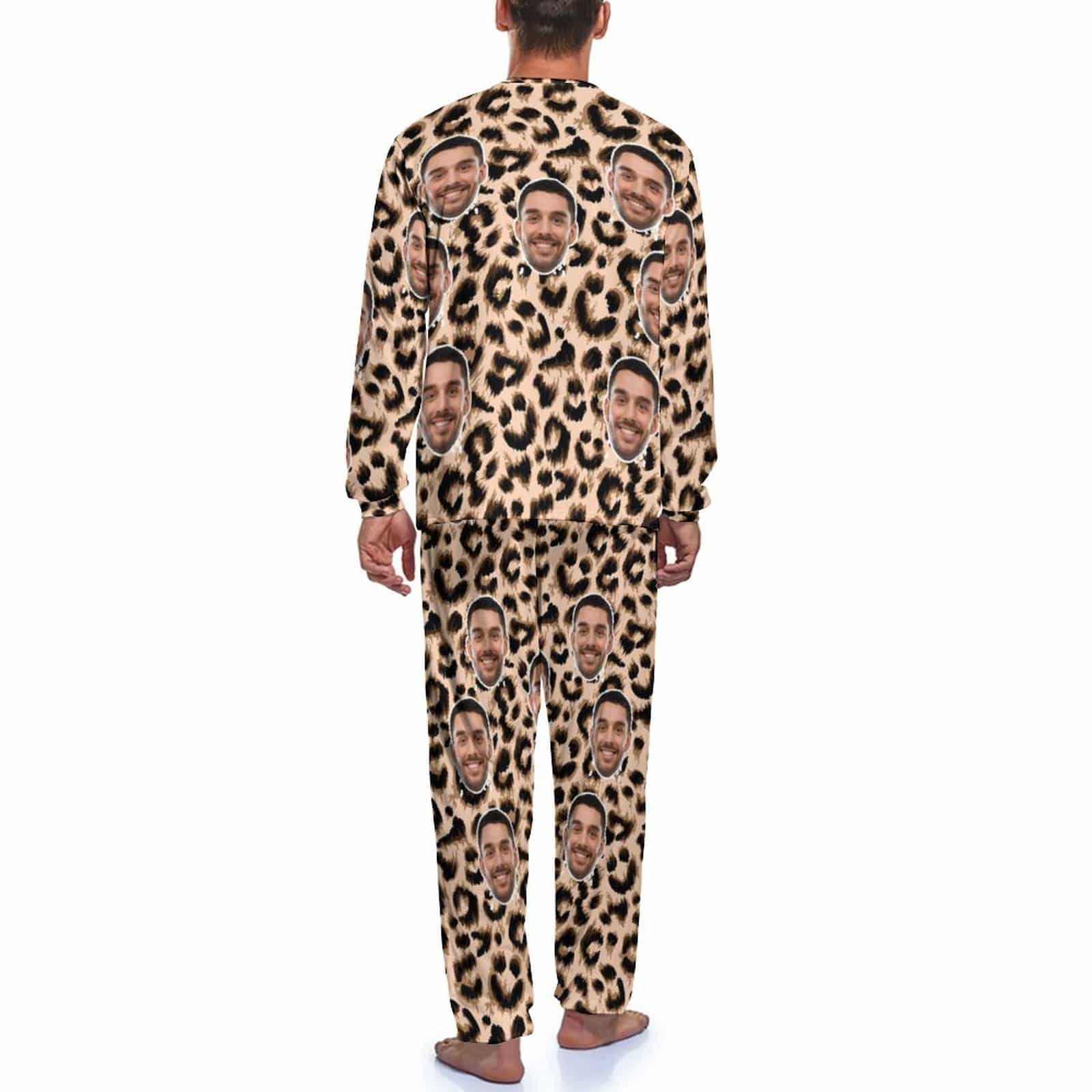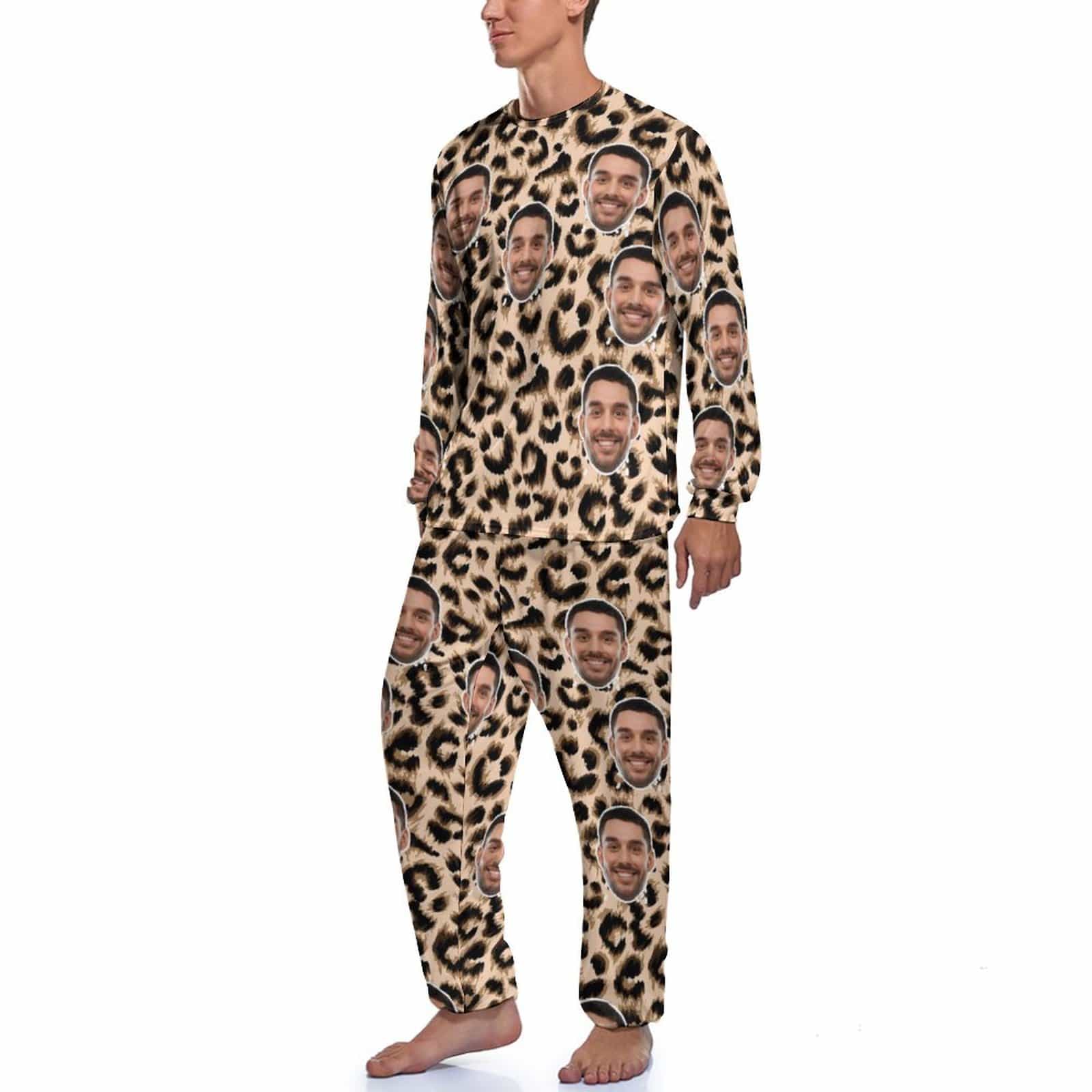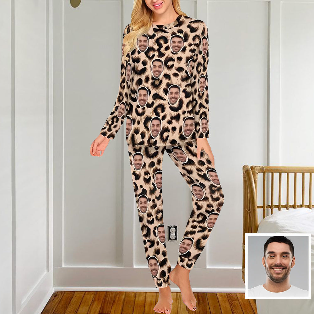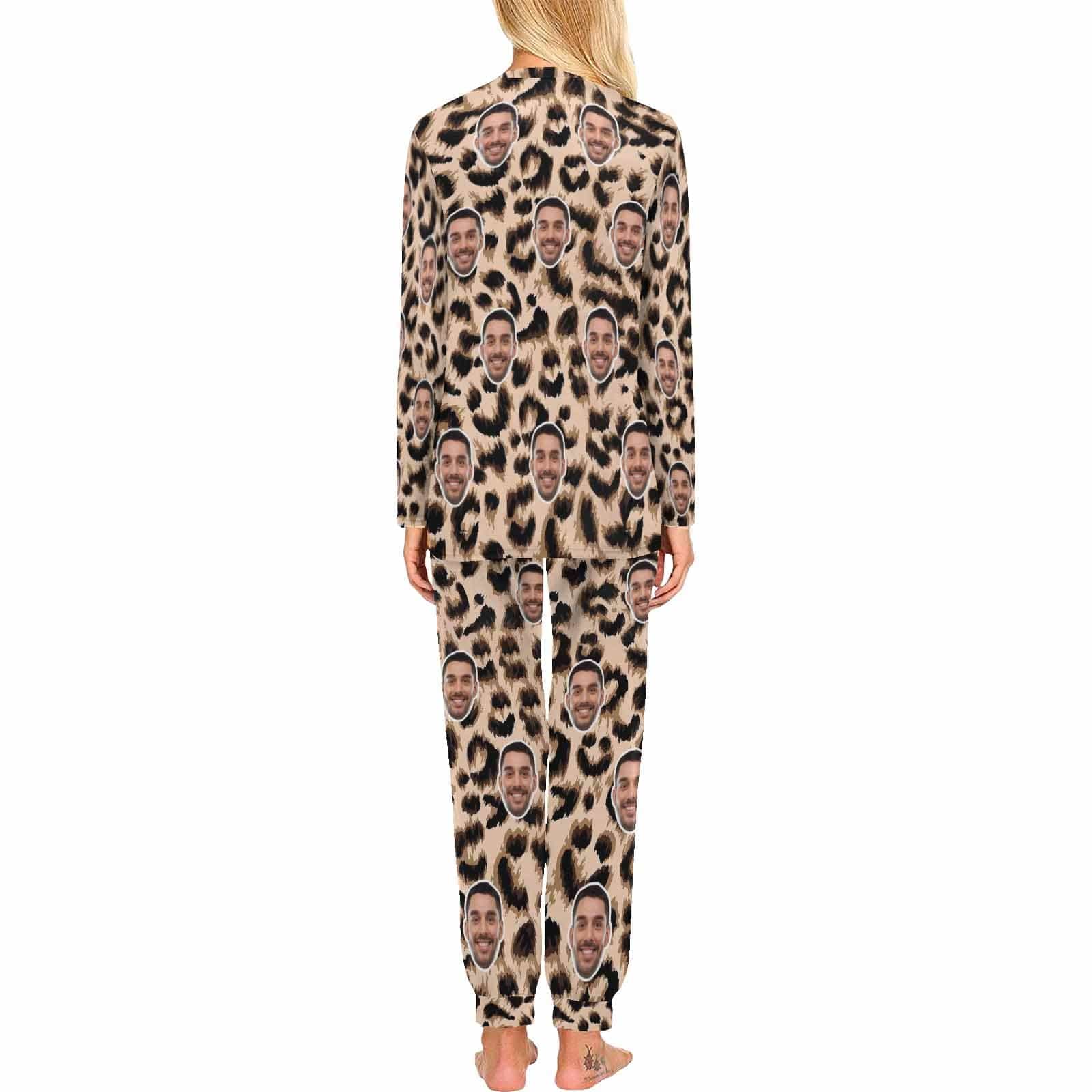 Custom Face Leopard Couple Pajamas Personalized Sleepwear