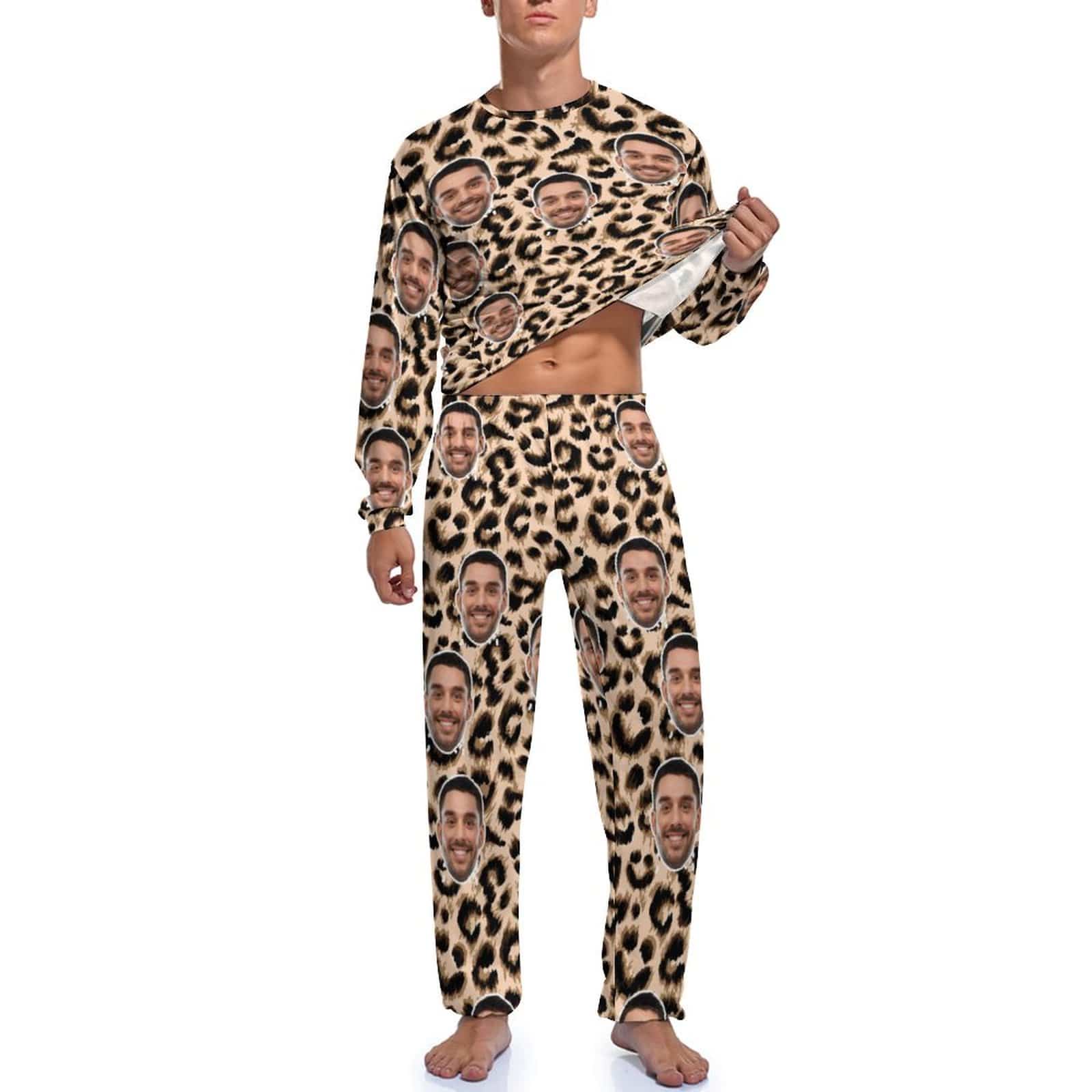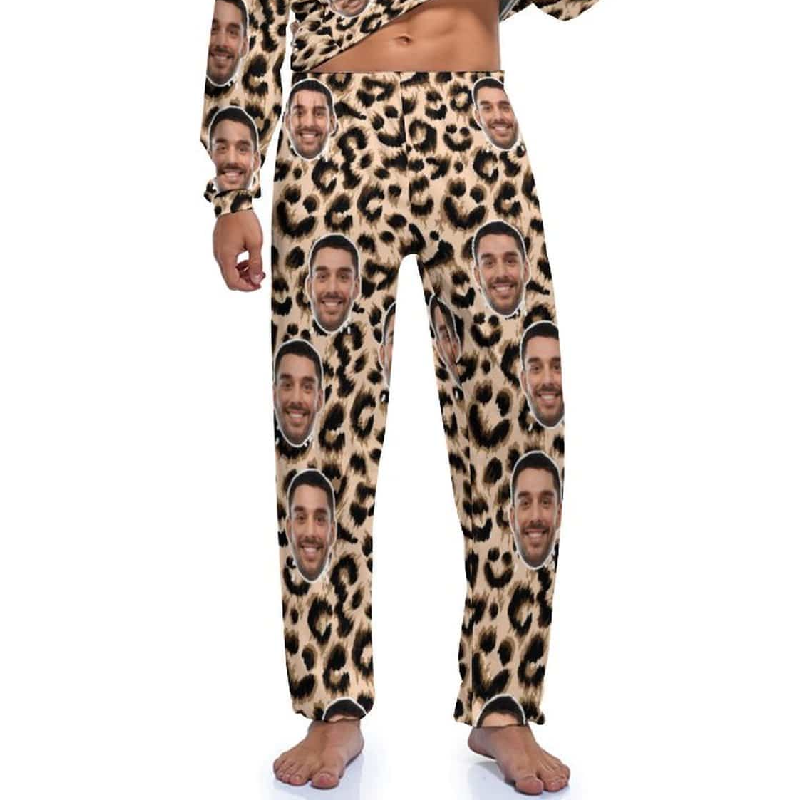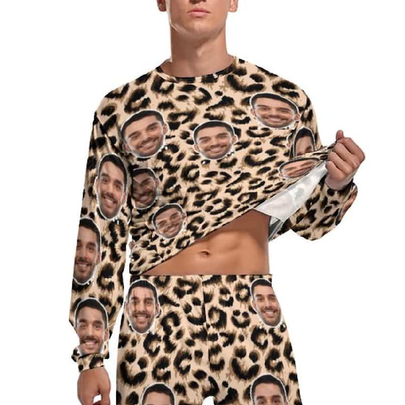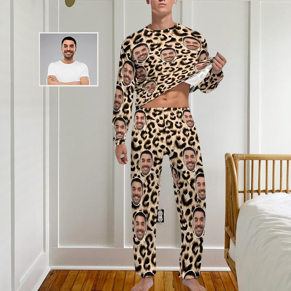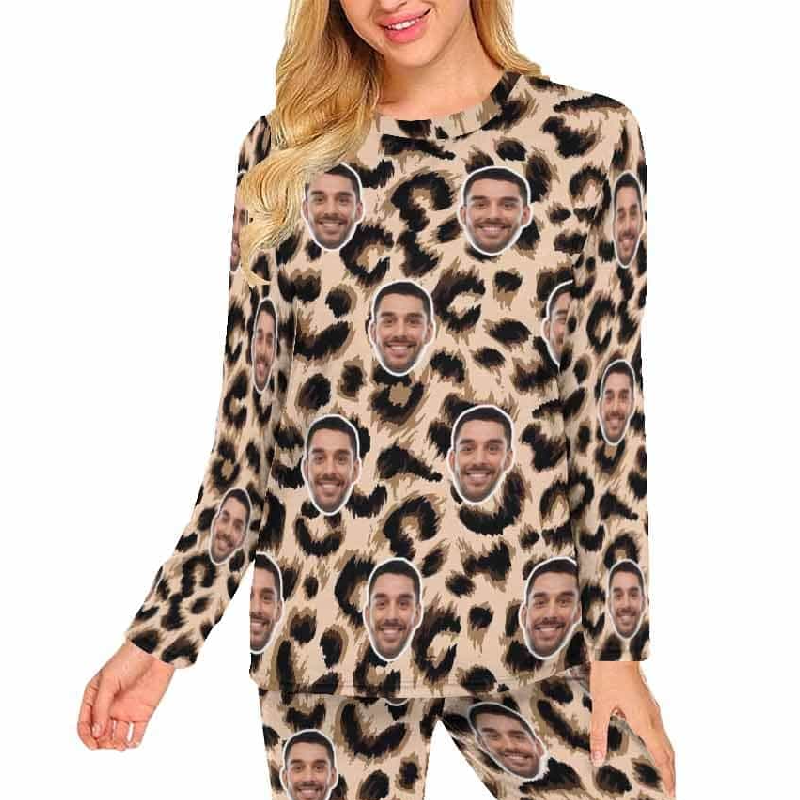 Custom Face Leopard Couple Pajamas Personalized Sleepwear