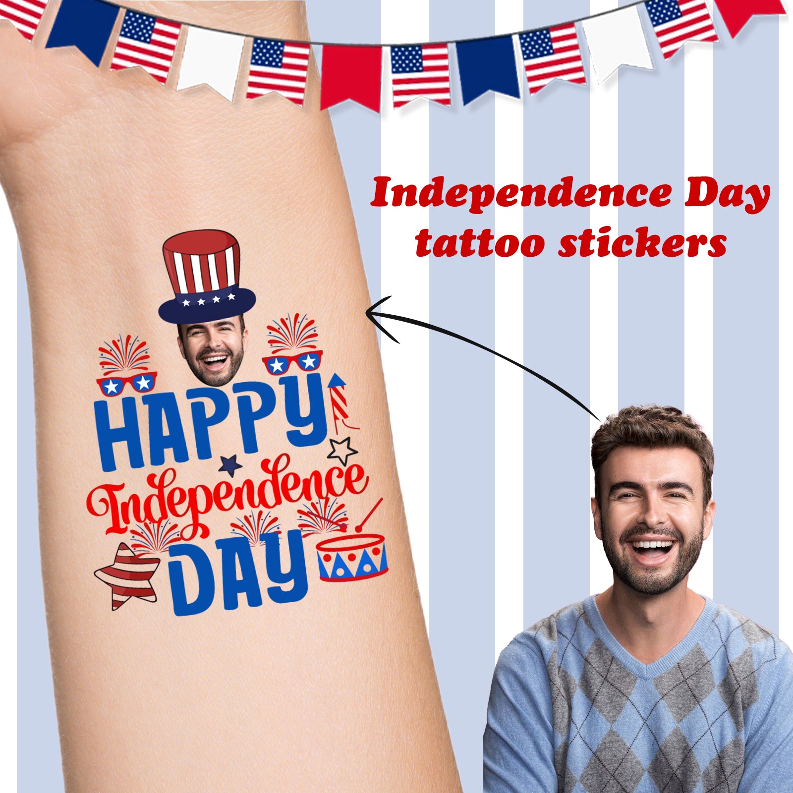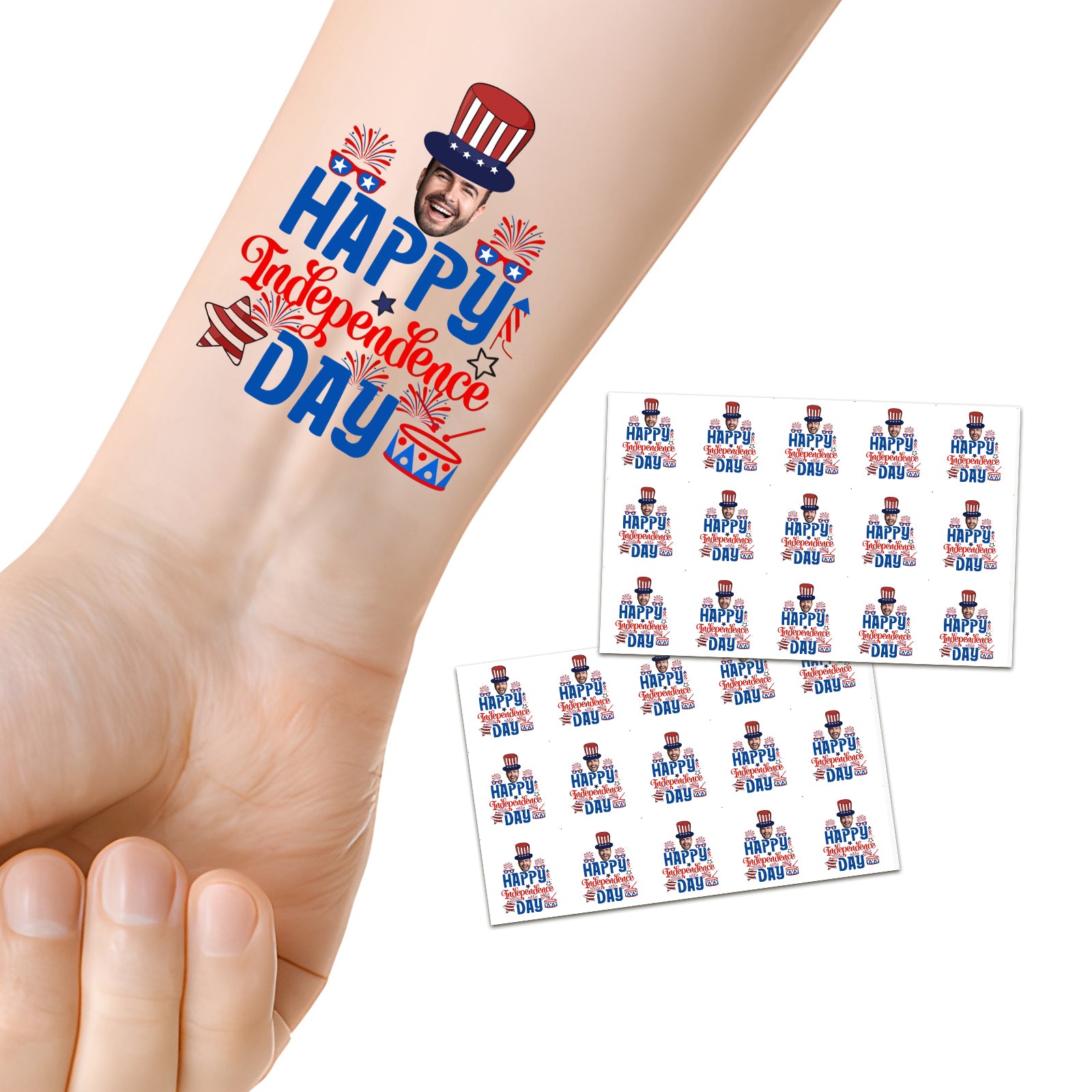 Custom Face Patriotic Tattoo Sticker Personalized Unique Independence Day Design