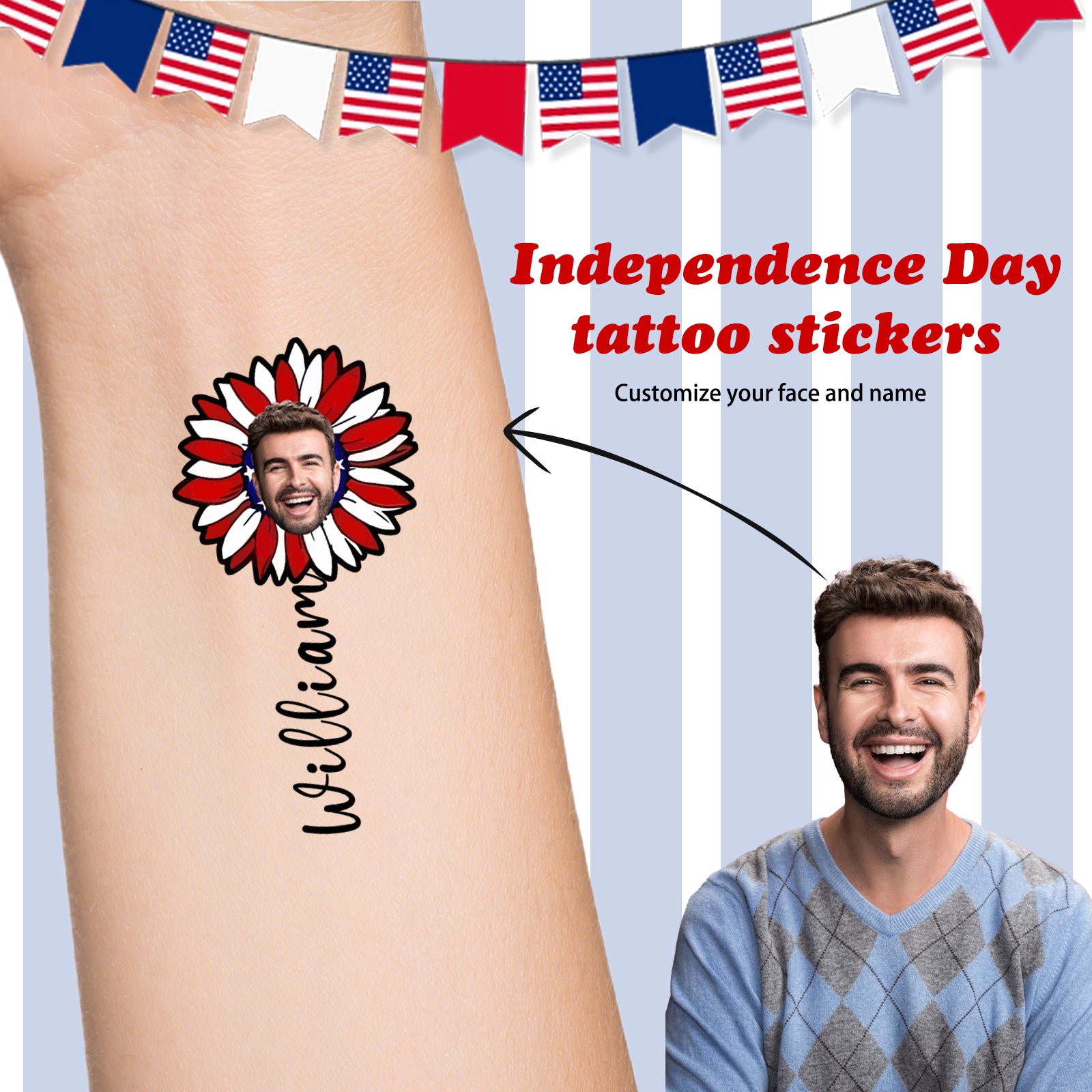 Custom Face Stars & Stripes Tattoo Personalized Name & Unique Style