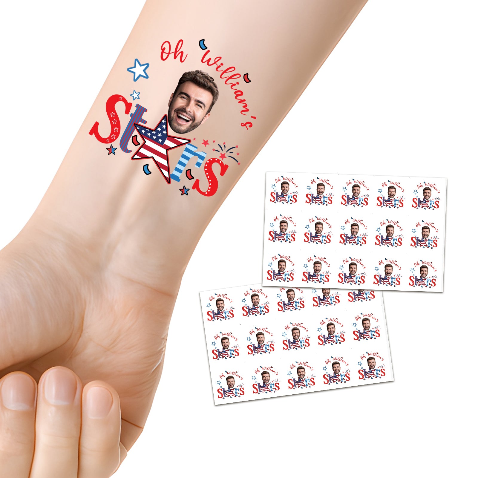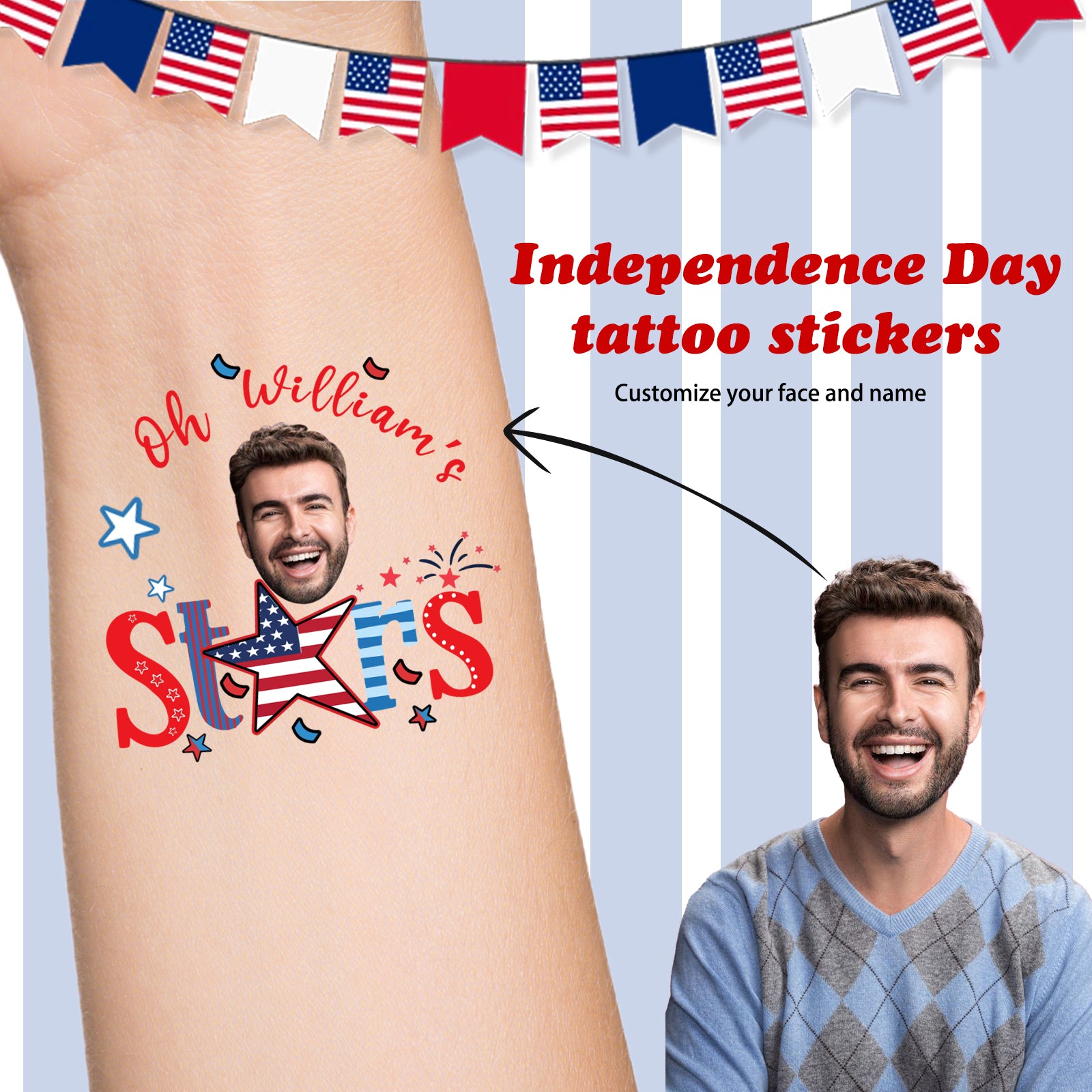 Custom Face USA Flag Tattoo Personalized Name & Unique July 4th Art