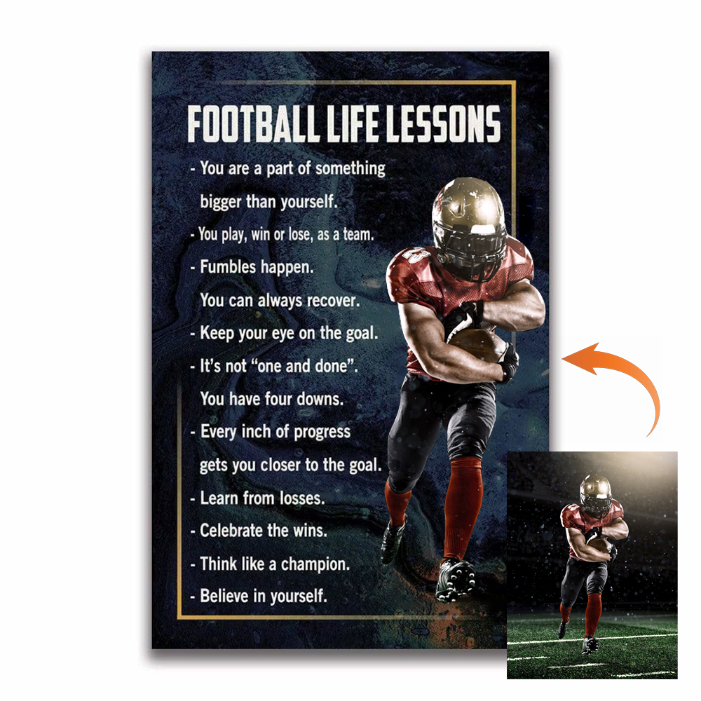 Custom Football Poster Canvas – Football Life Lessons With Photo