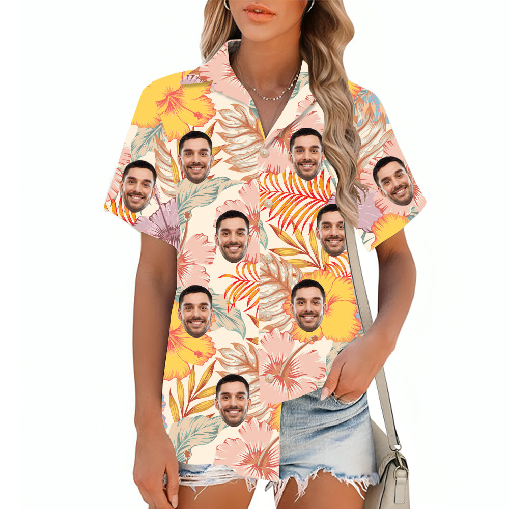 Custom Lightweight Hawaiian Shirt Personalized Floral Surf Shirt Custom Face Women Shirt