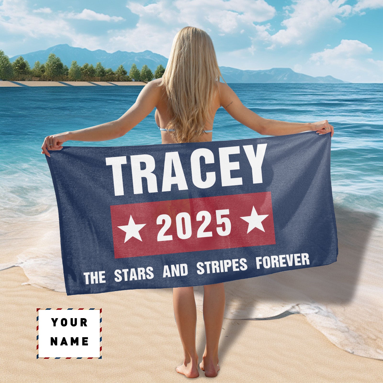 Custom Name 2025 Stars and Stripes Beach&Bath Towel