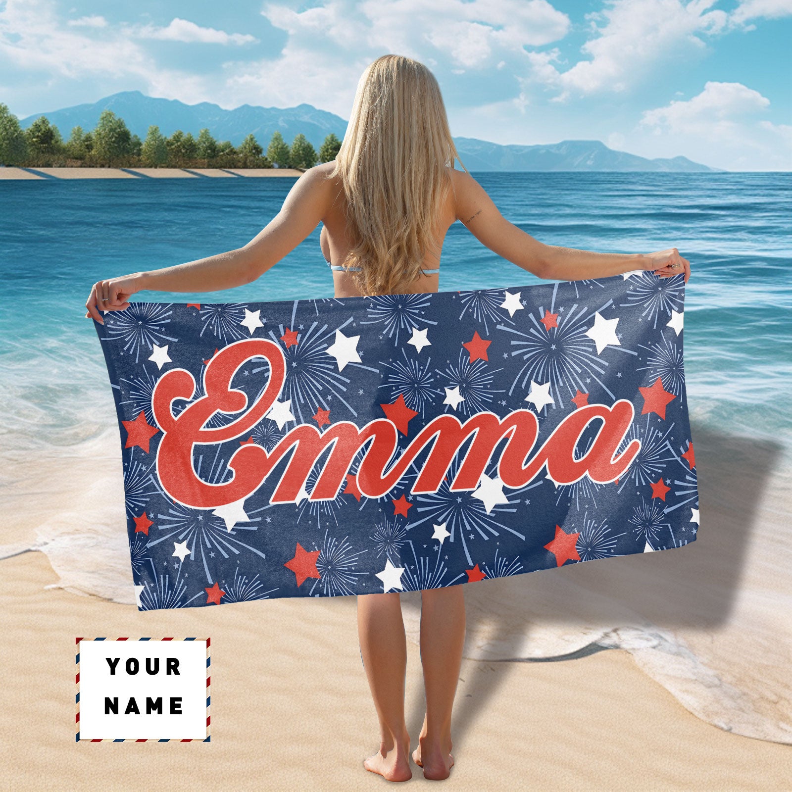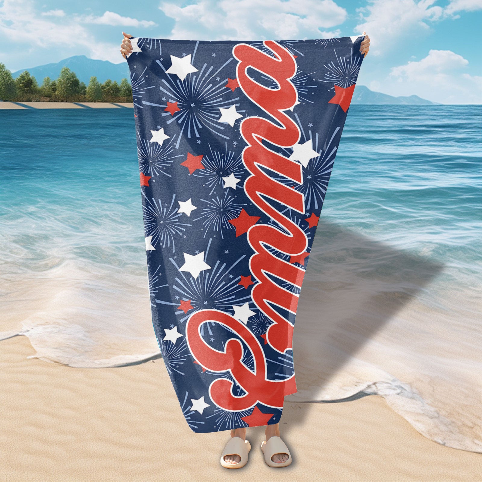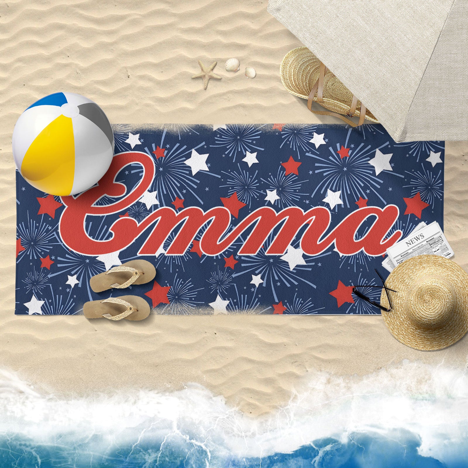 Custom Name Patriotic Beach Towel Personalized Unique Flag Pool Side Essentials
