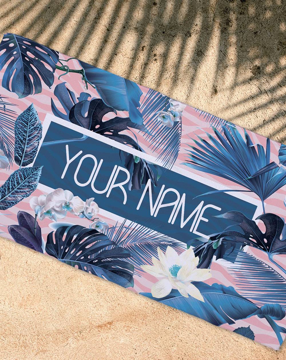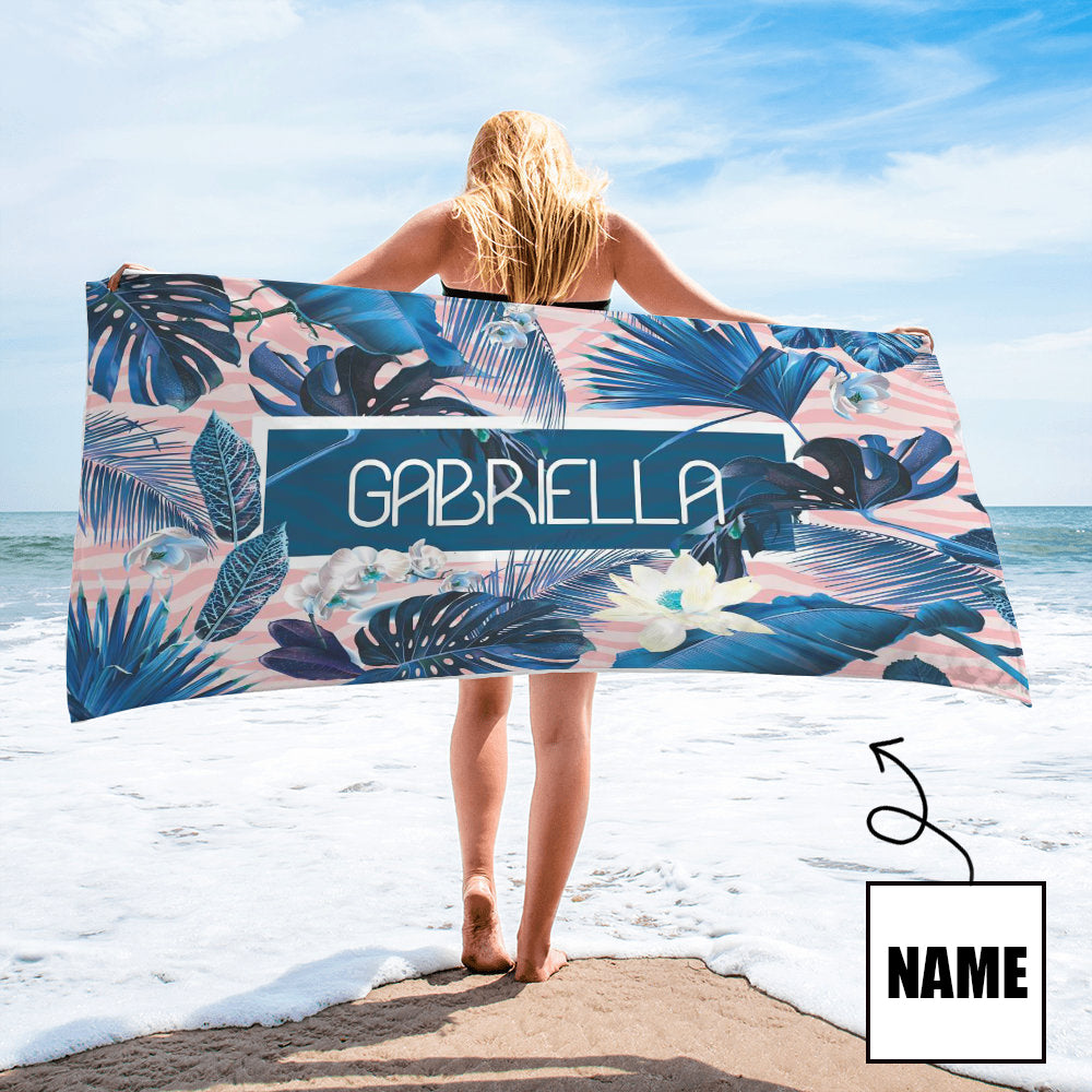 Custom Personalized Name Beach Towel Tropical Summer Seaside Travel Pink