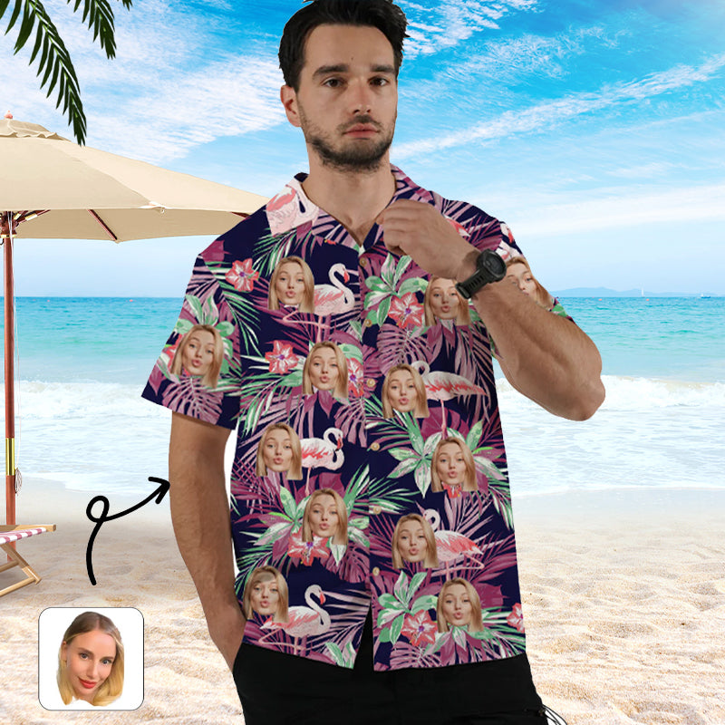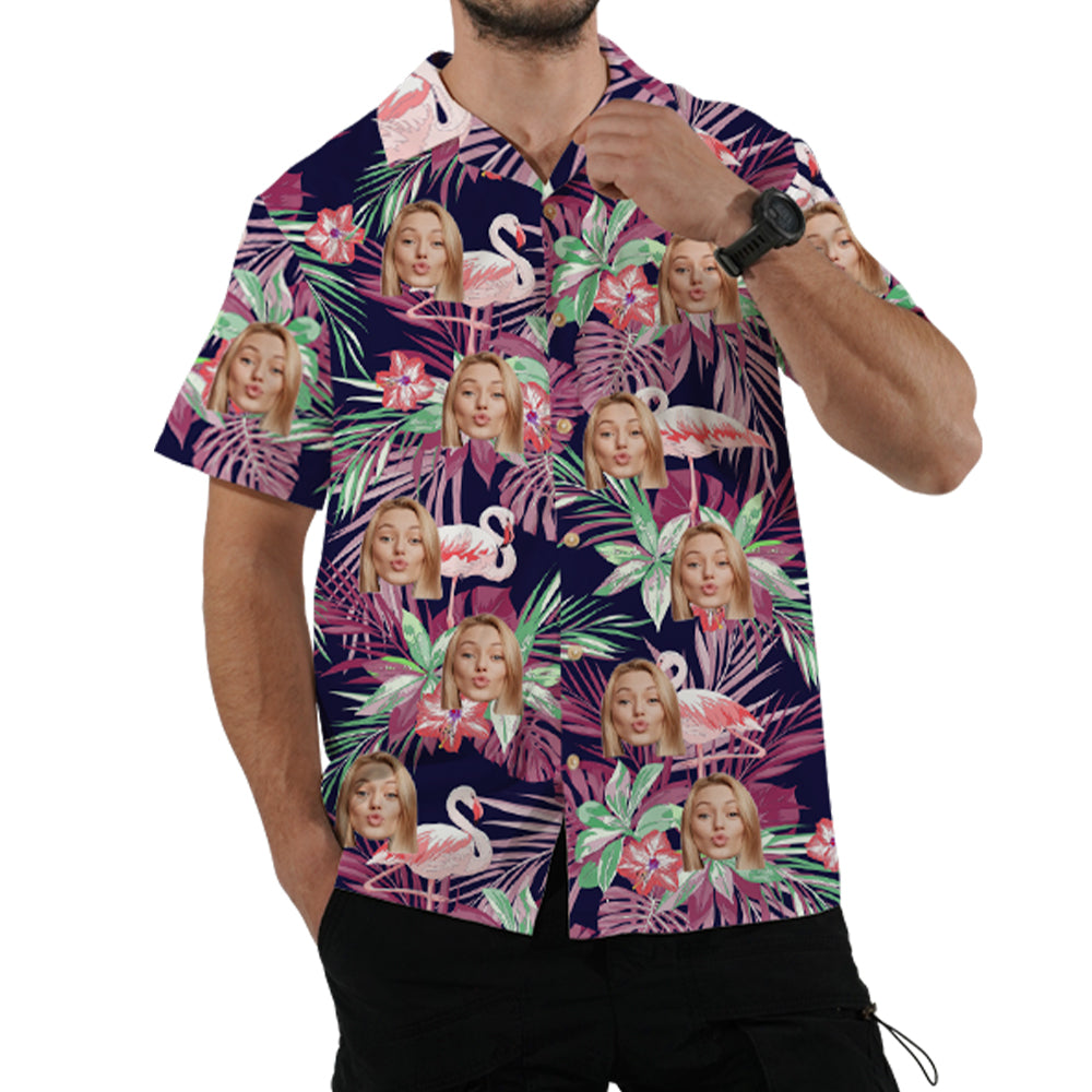 Custom Photo Hawaiian Shirt Flamingo Tropical Aloha Shirt
