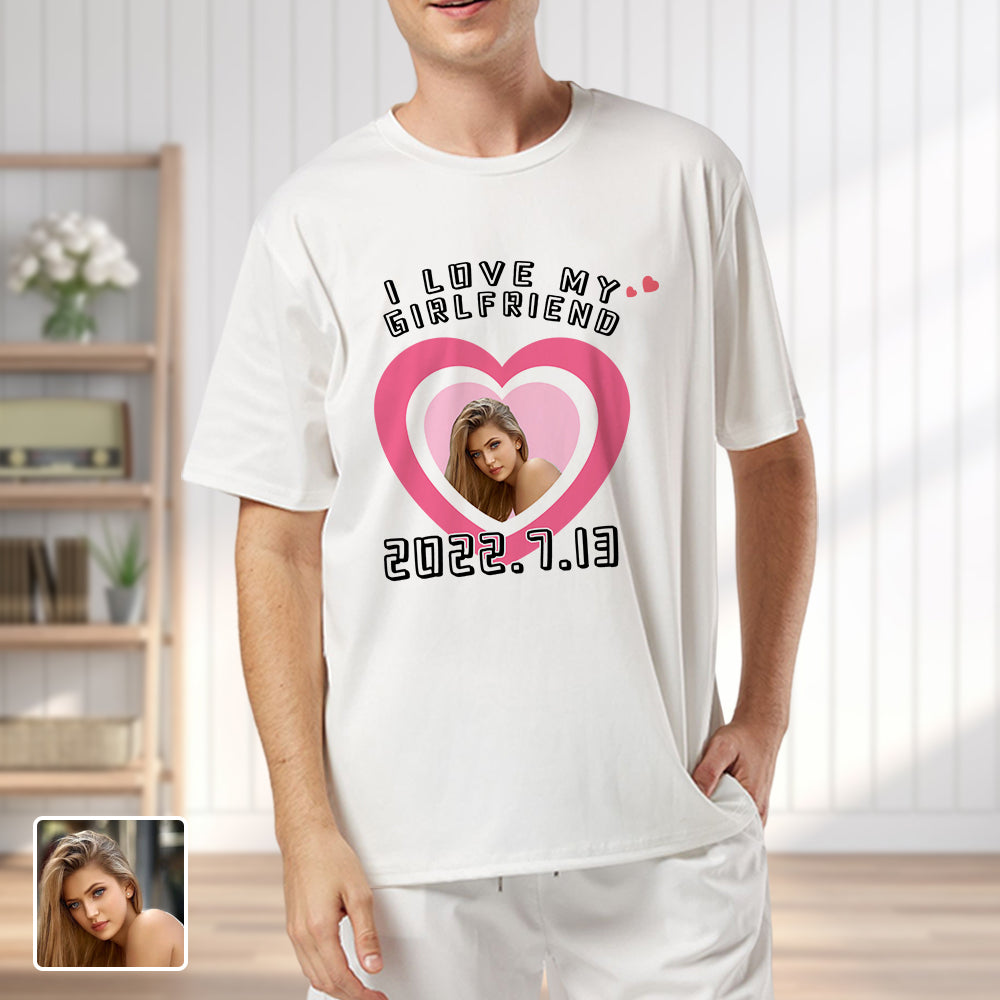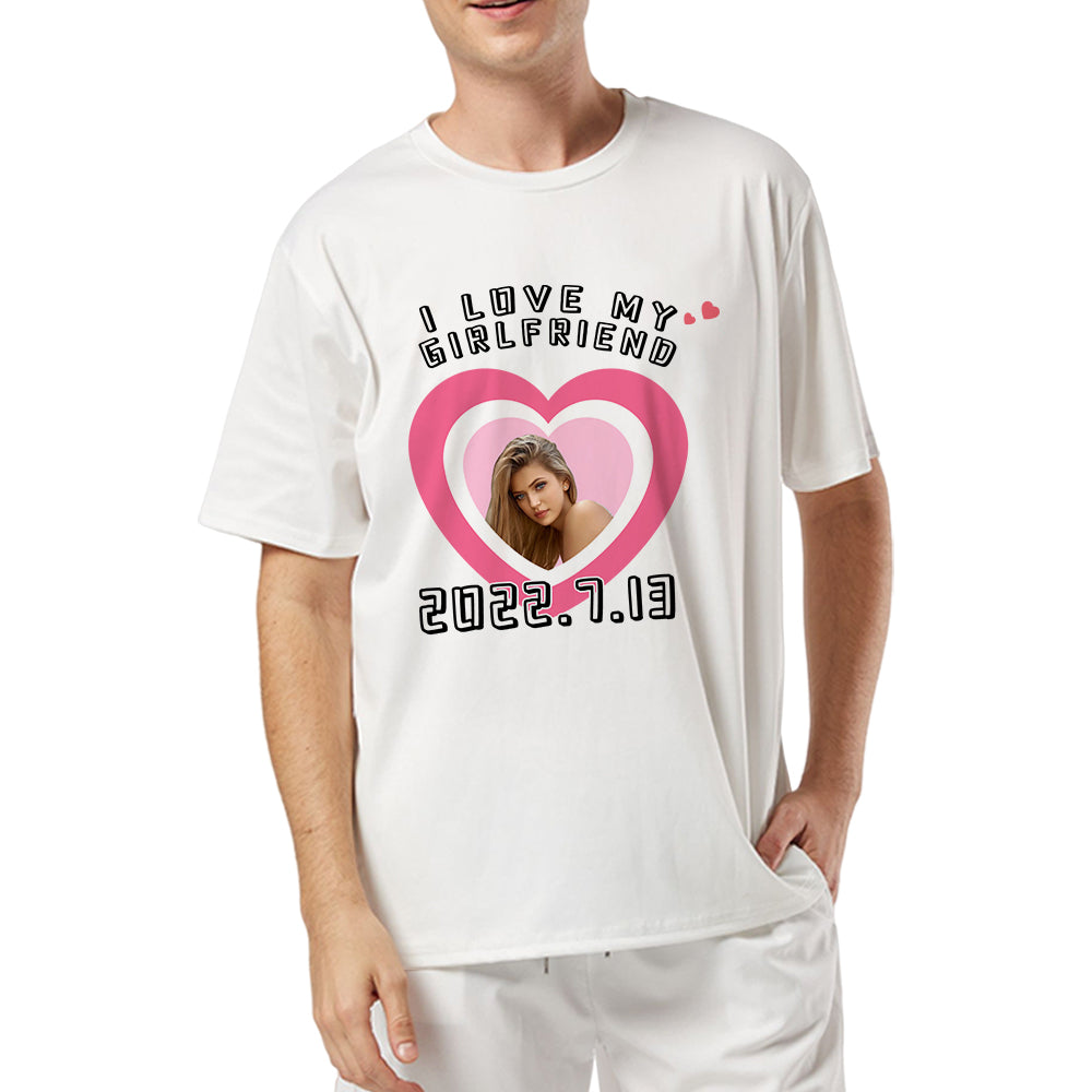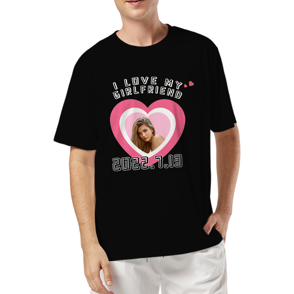 Custom T-shirt Pink Heart Upload Girlfriend Photo I LOVE MY GIRLFRIEND