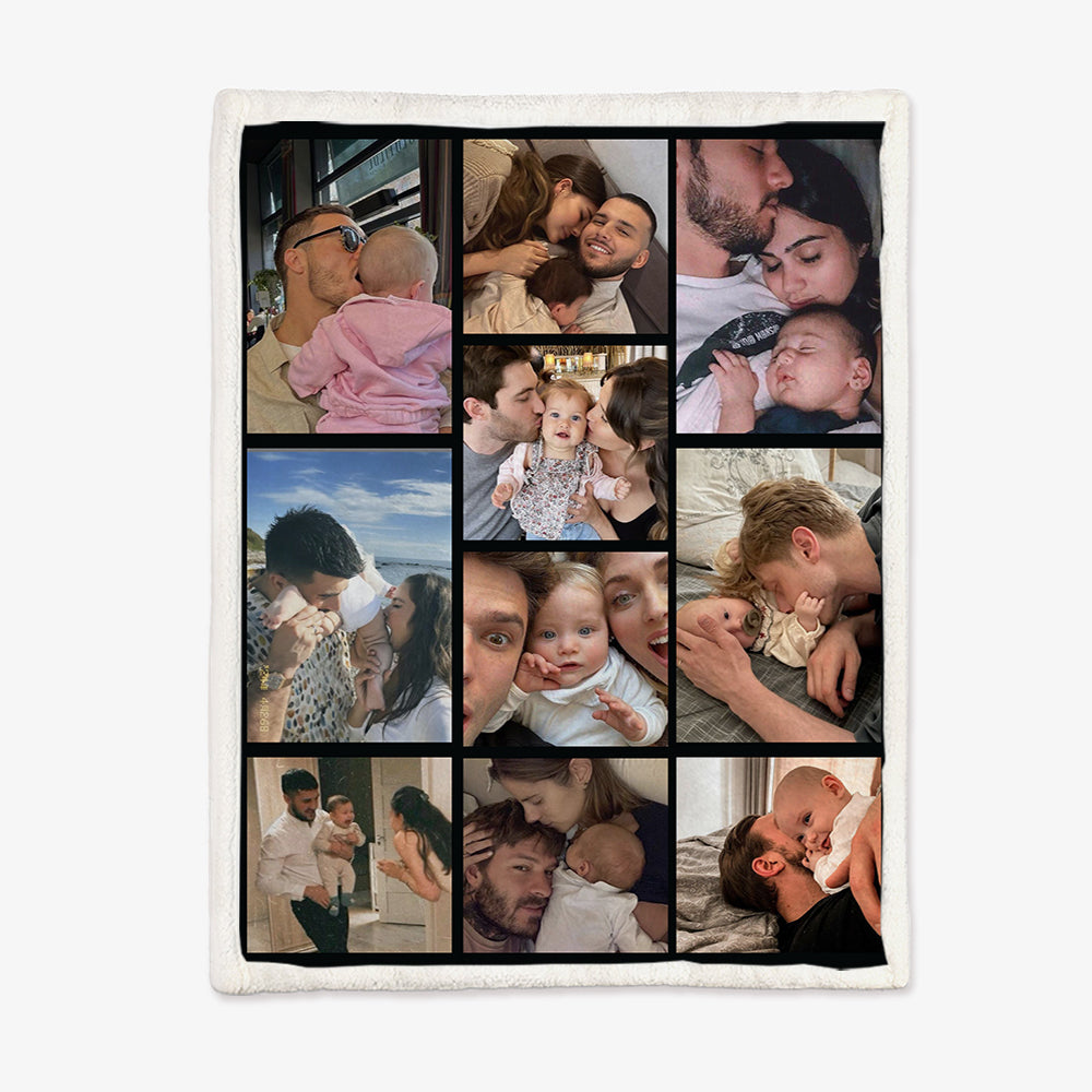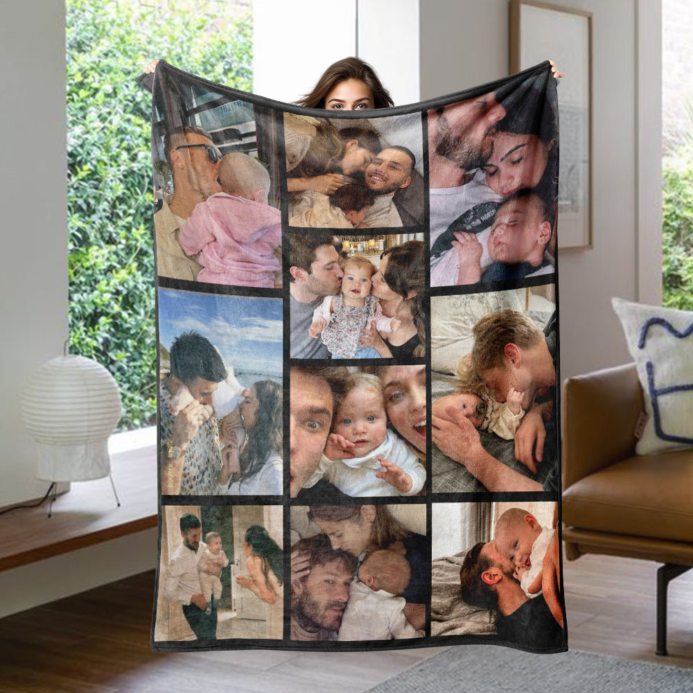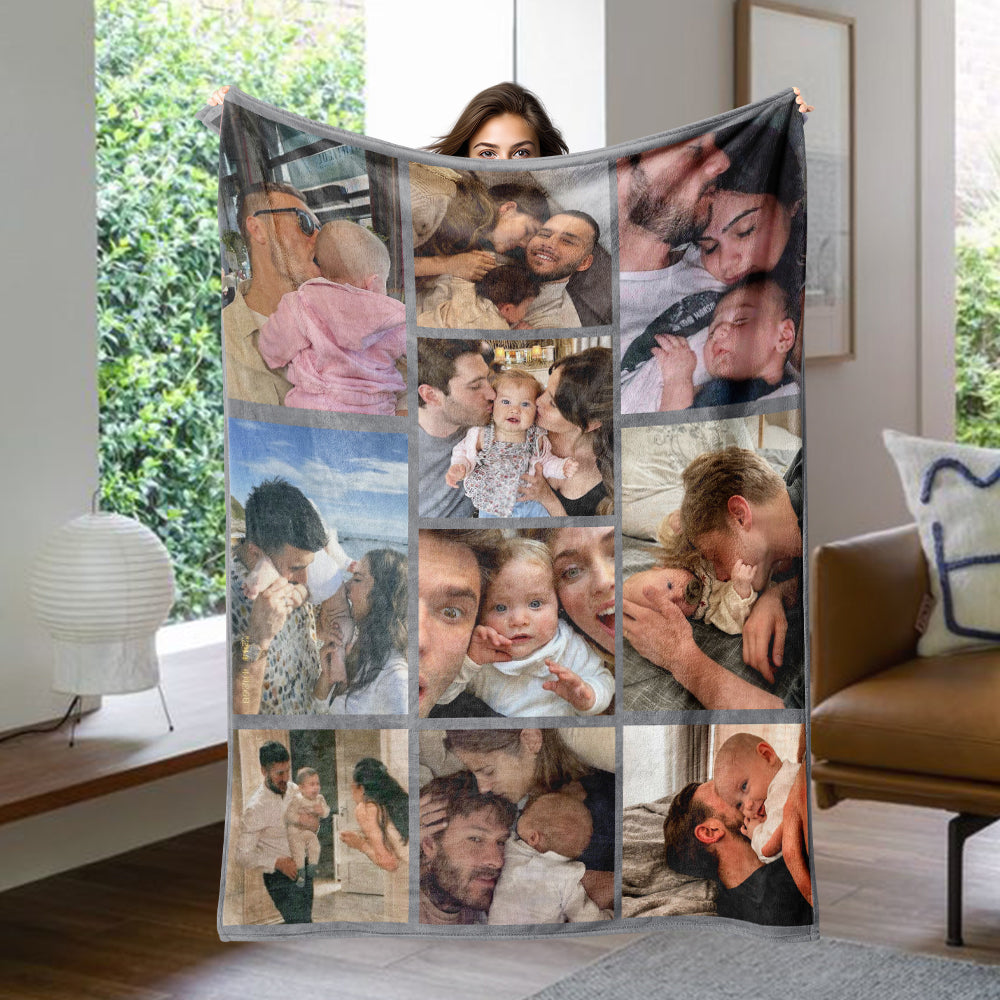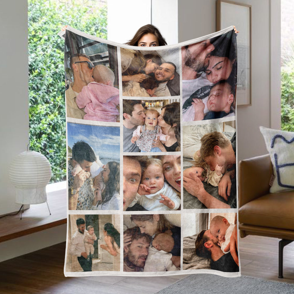 Customized 10 Picture Personalized Blanket Surprise Anniversary Gift for Family Wife Husband Children's Growth Memorial Blanket