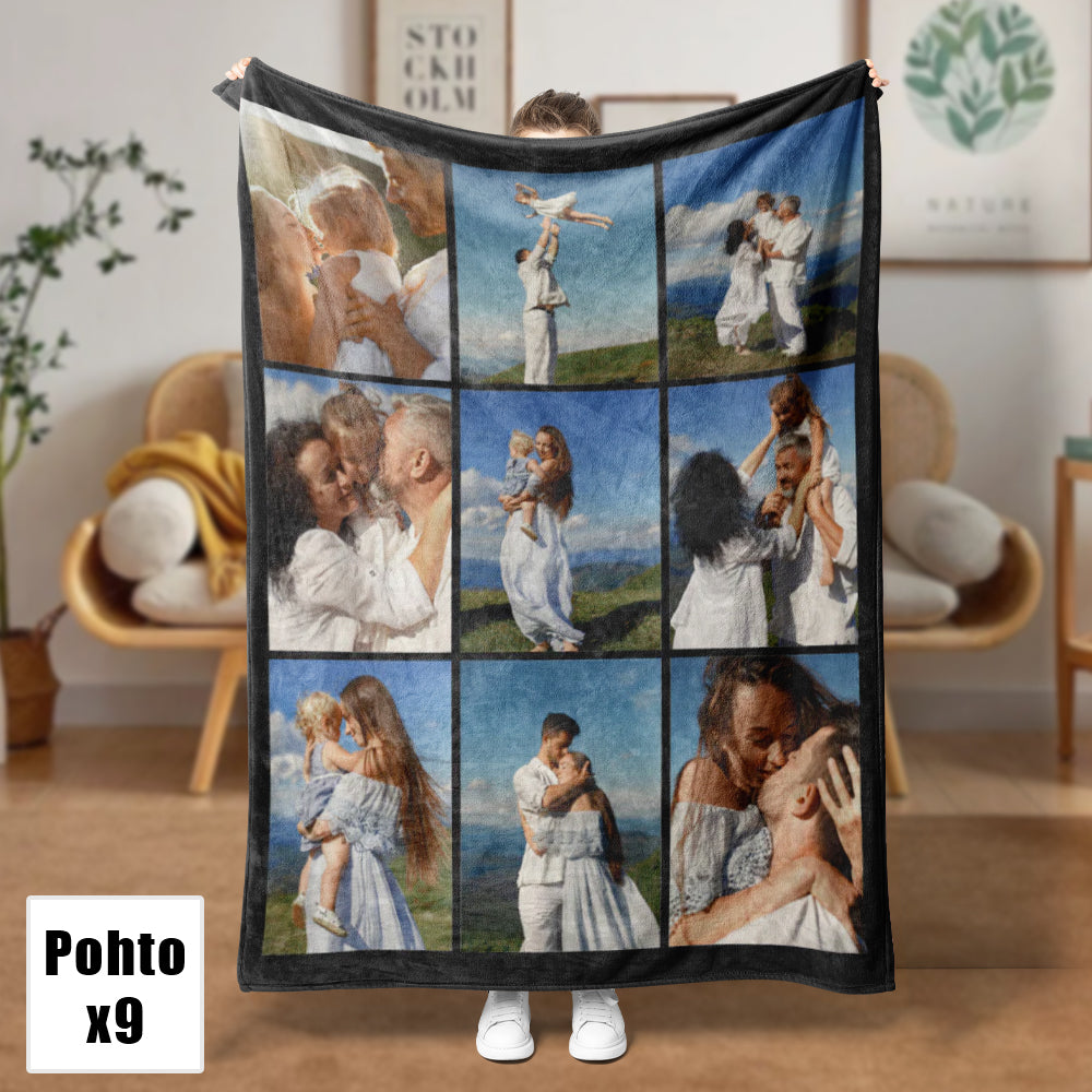 4FunGift® Family Travel Souvenir Photos Nine Grid Photos Customized Blankets