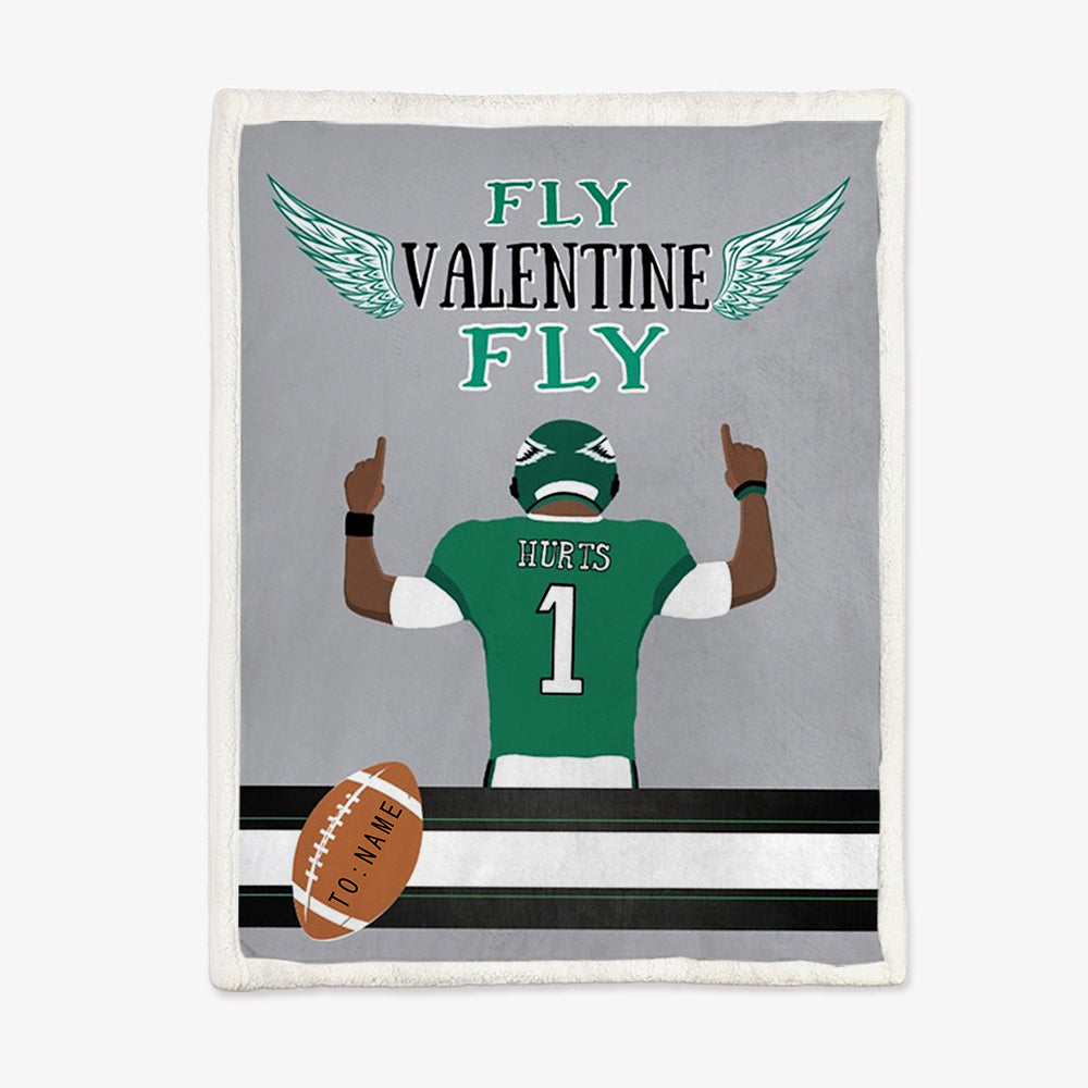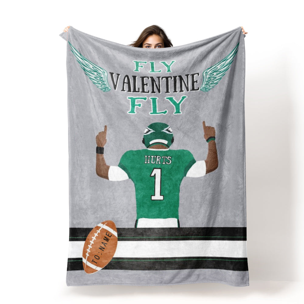 Fly Eagles Fly Valentine Personalized Blanket Custon Name Philadelphia Eagles Football Fans Gift for Boyfriend/Girlfriend