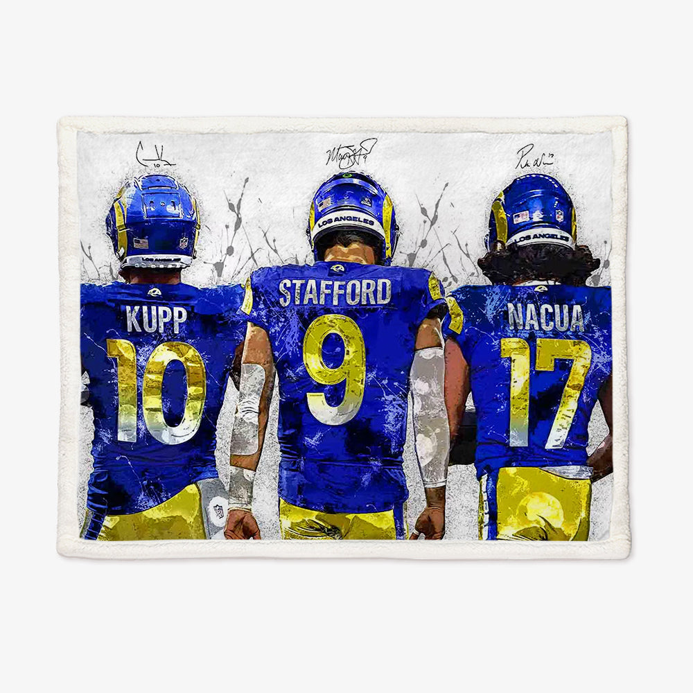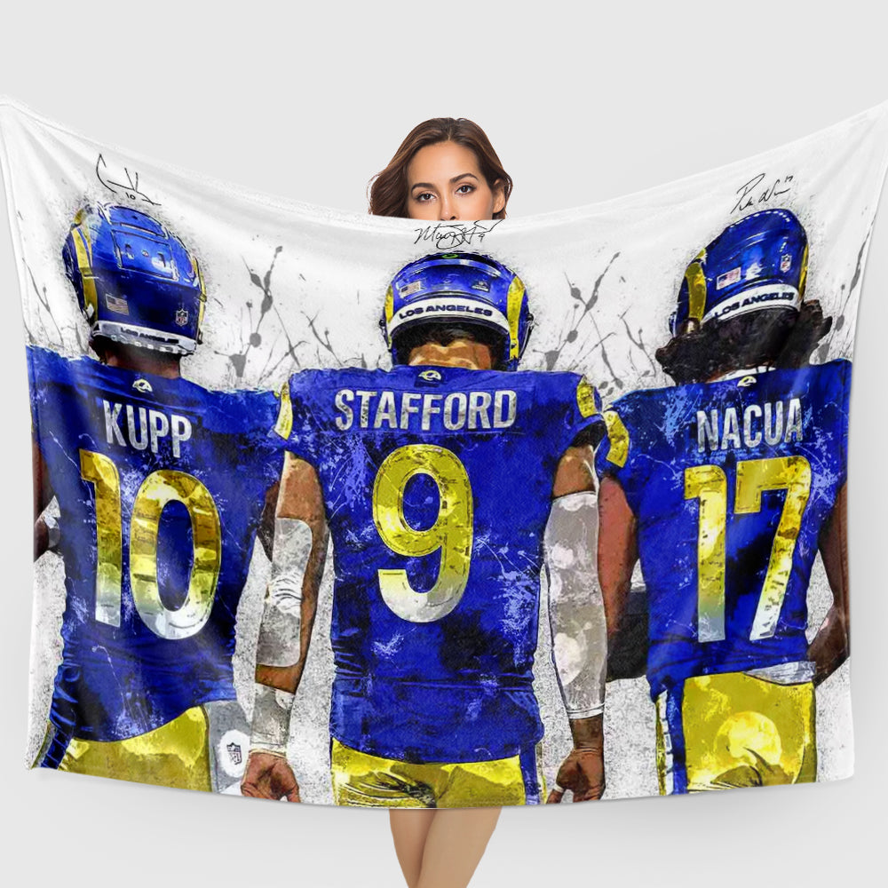 Football Blanket Matthew Stafford, Puka Nacua, Cooper Kupp, Los Angeles Rams Legendary Star Signature Print Valentine's Day Gift for Boyfriend Football Fans