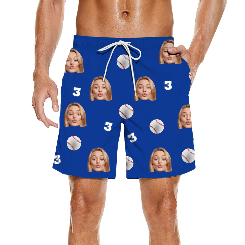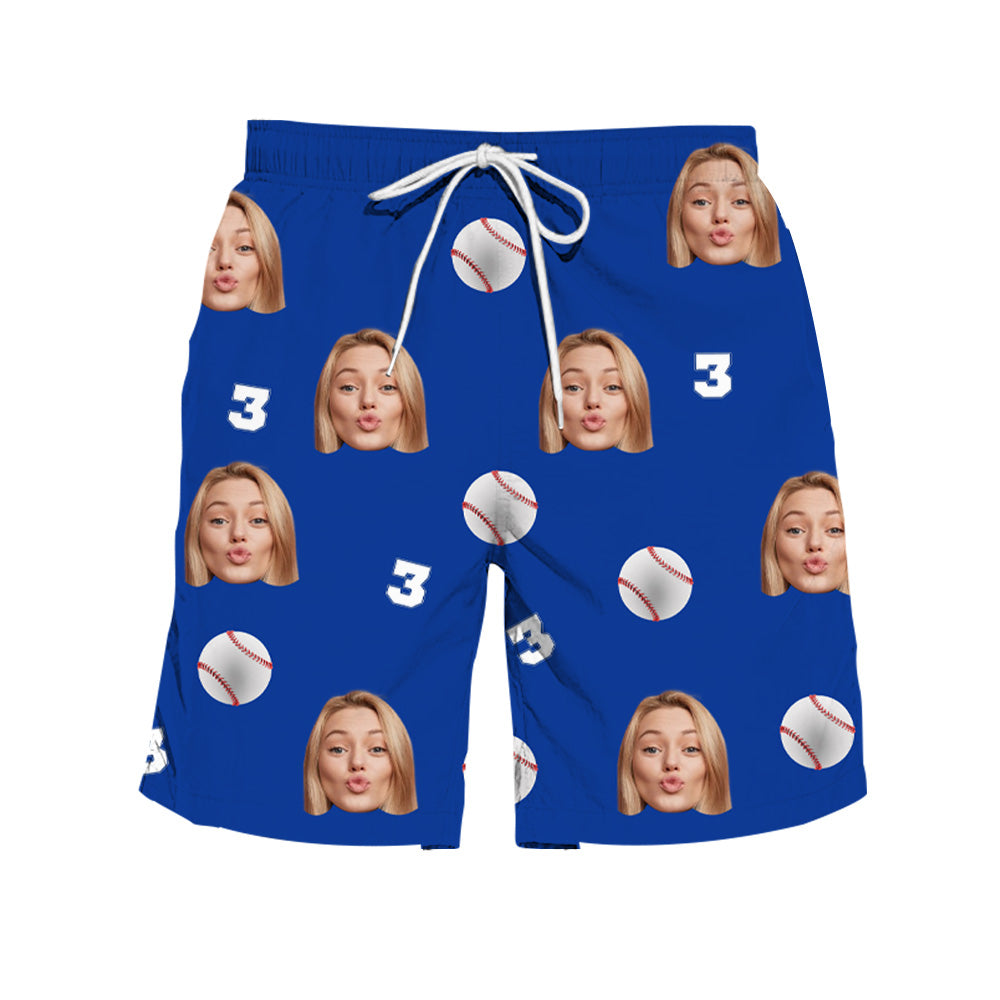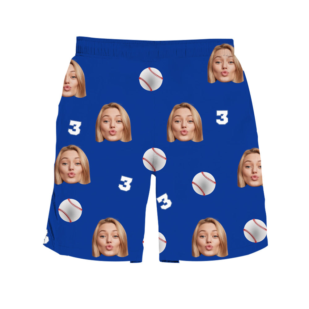 Funny Baseball Men's Beach Shorts Personalized Face Beach Shorts Summer Birthday Holiday Gift