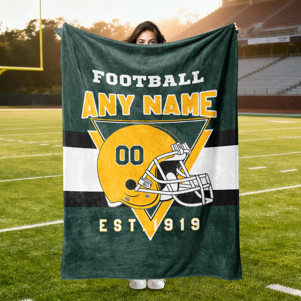 4FunGift Green-Bay American football Helmet Custom Number&Name Blanket