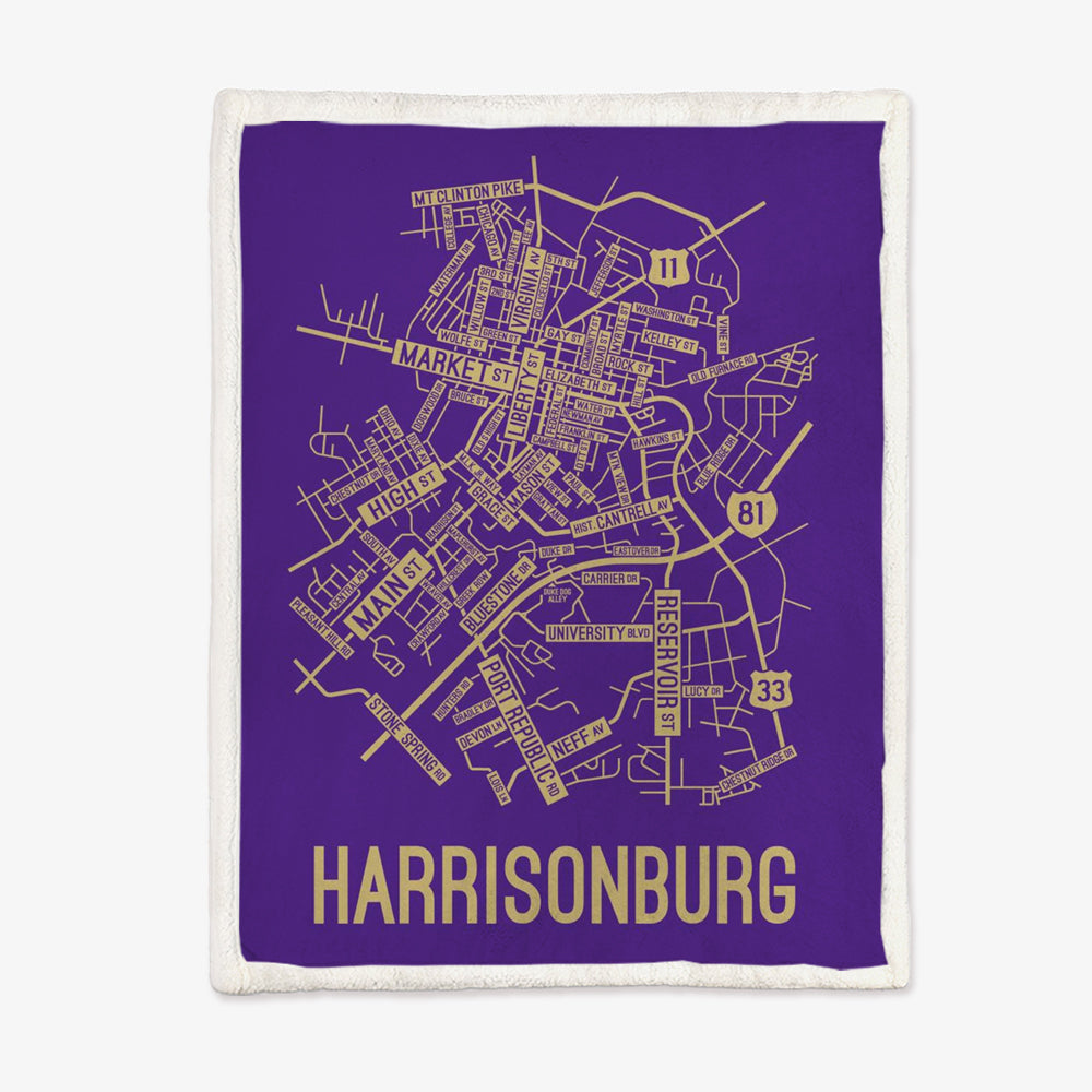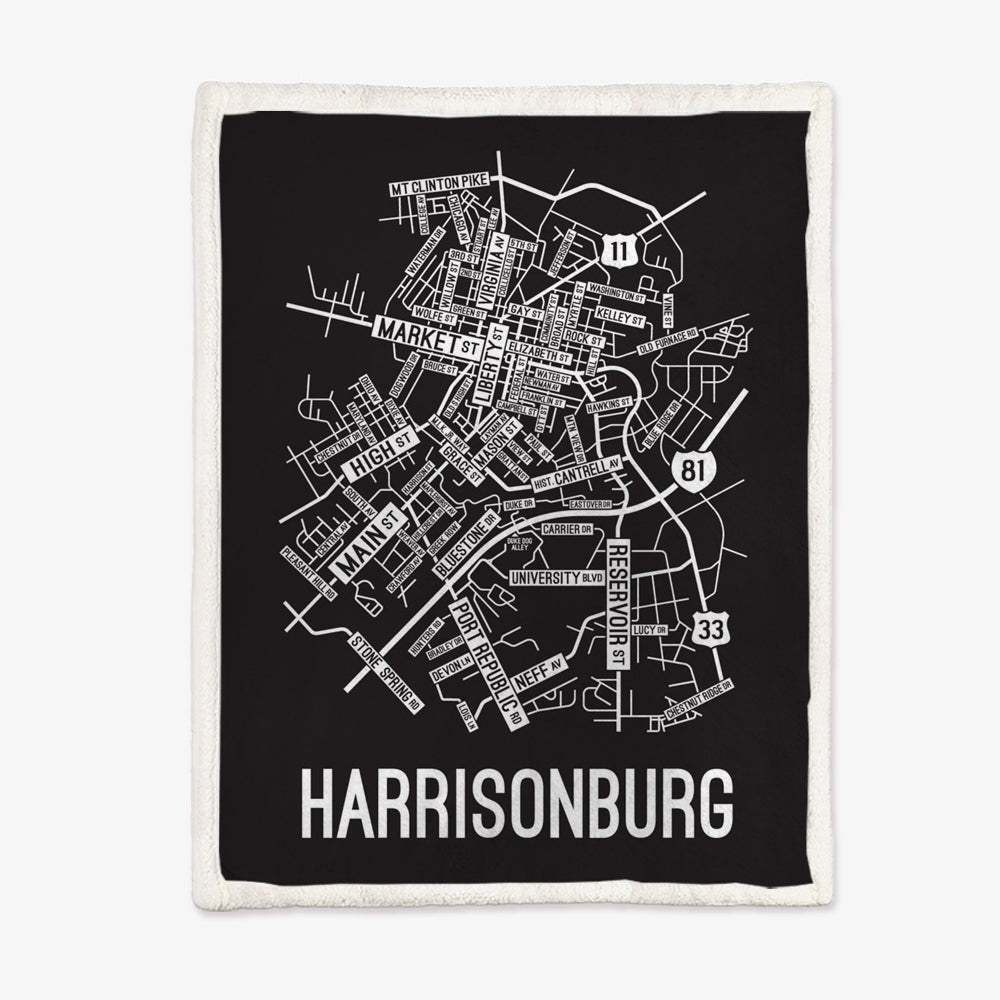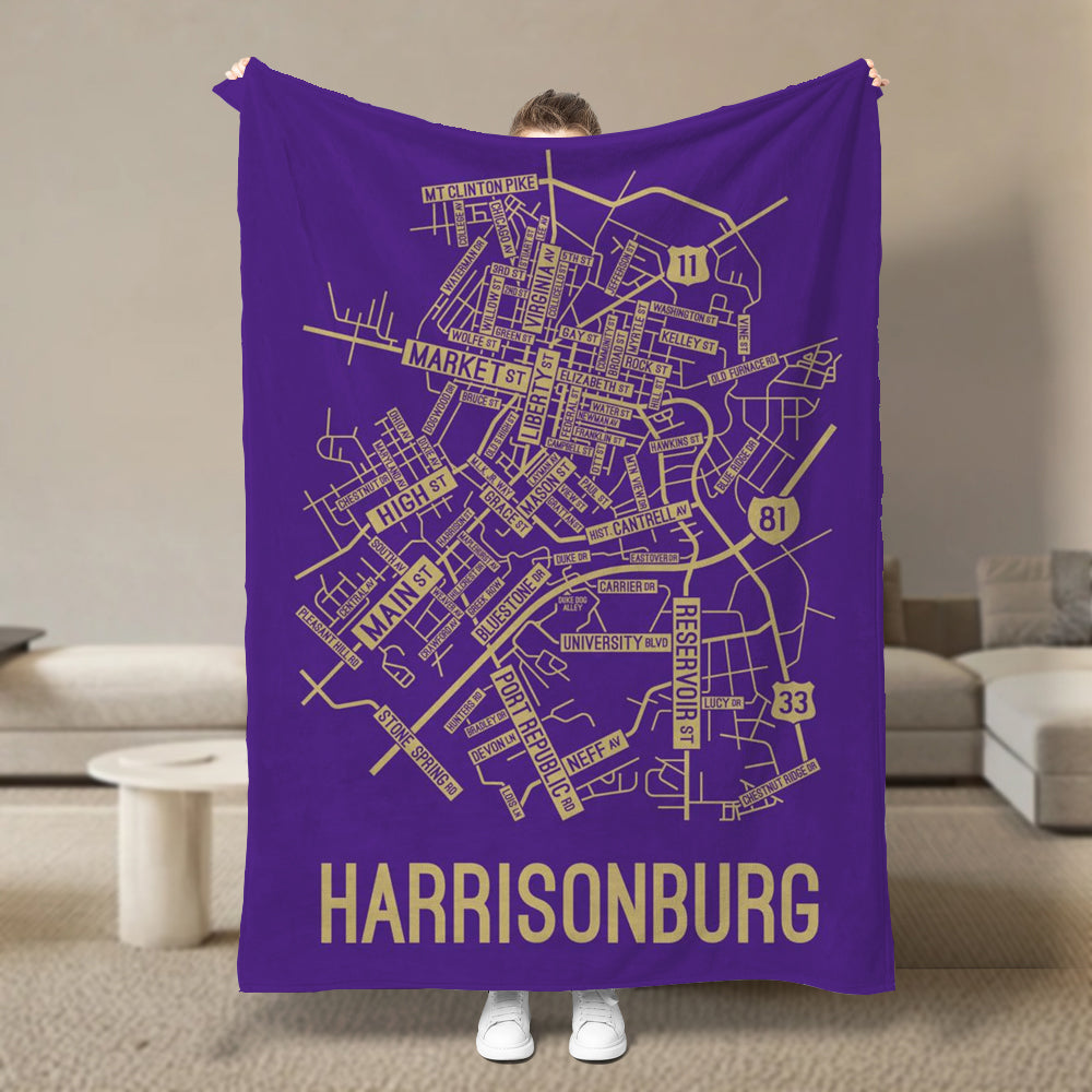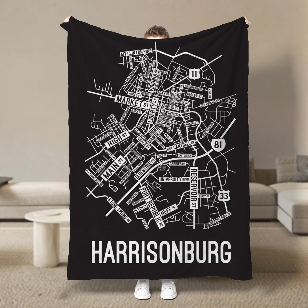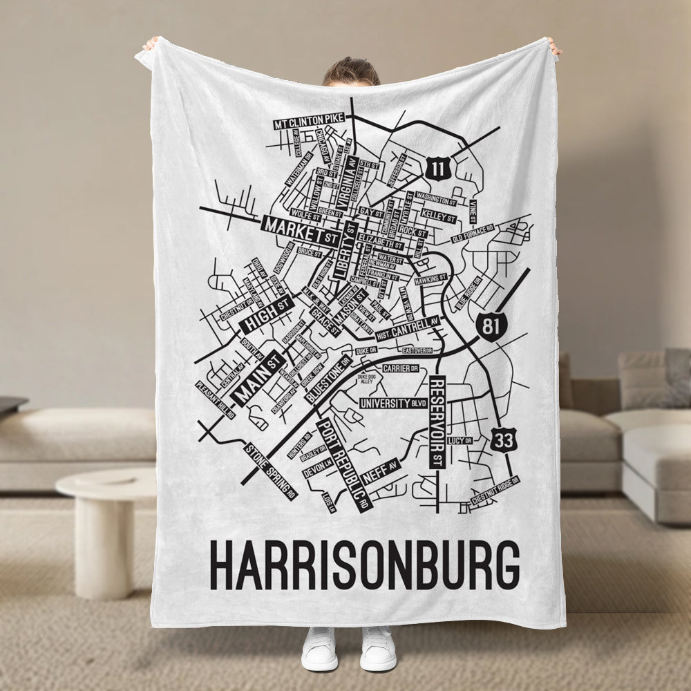 Harrisonburg, Virginia Street Map Blanket Freshmen/Graduates Memorial Gifts