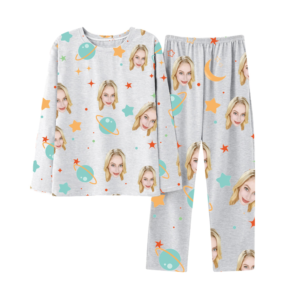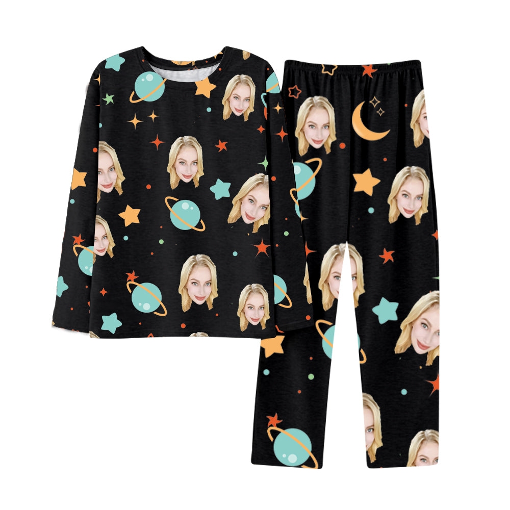 Home Long Sleeve Pajamas Planet Stars Printing Customized Avatar