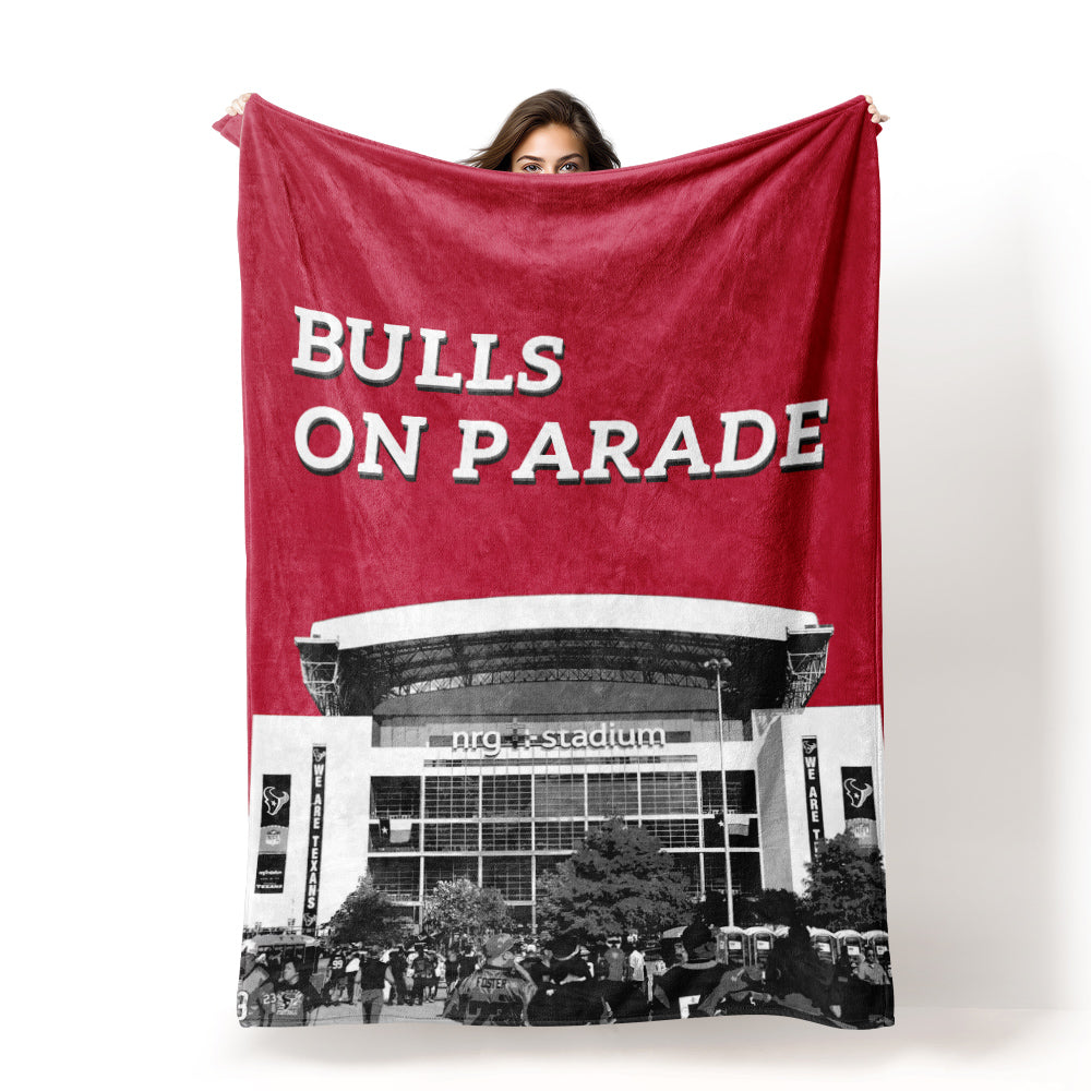 4FunGift Houston Stadium Skyline Bulls on Parade Print Blanket Football Stadium Sherpa Blanket