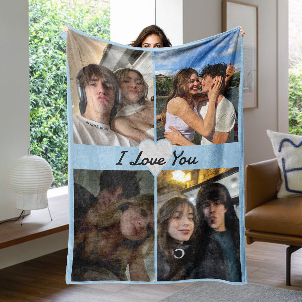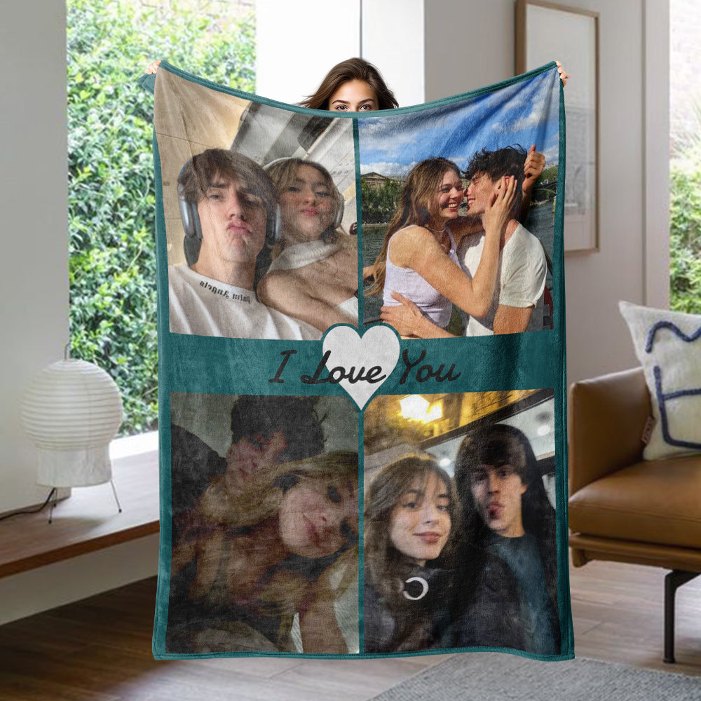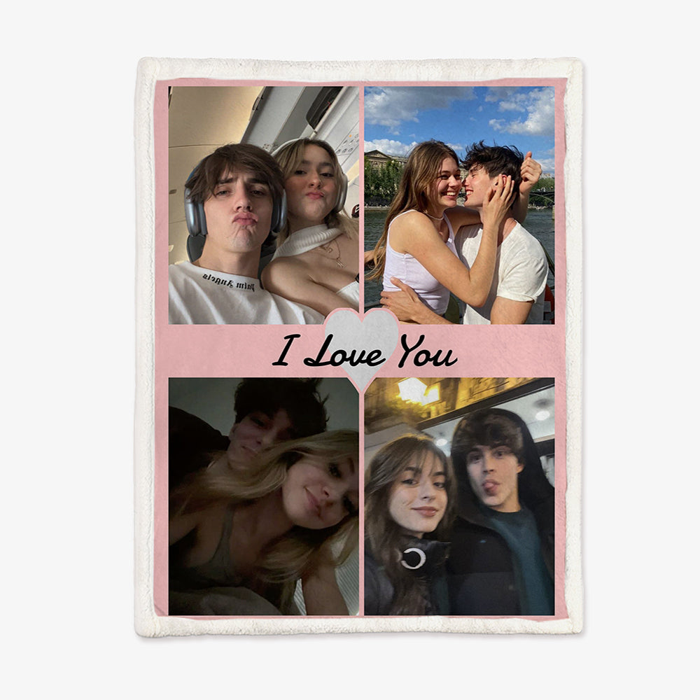 I Love You Multi-color Couple Custom Blanket Personalized 4 Pictures Winter Sherpa Blanket Birthday Valentine's Day Gift