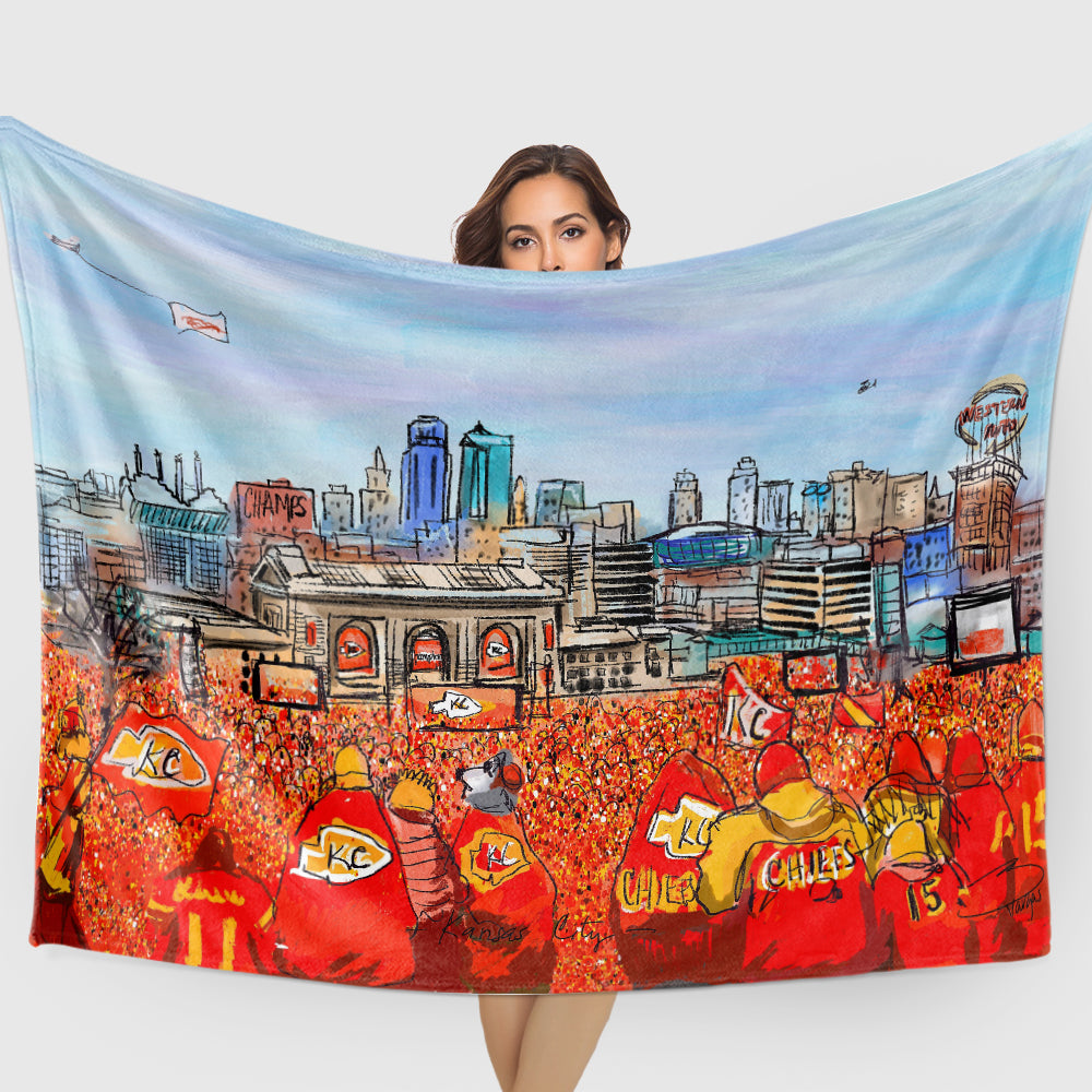 Kansas City Champions Football Rally Parade Print Blanket Union Station Football Fan Valentine's Day Gift